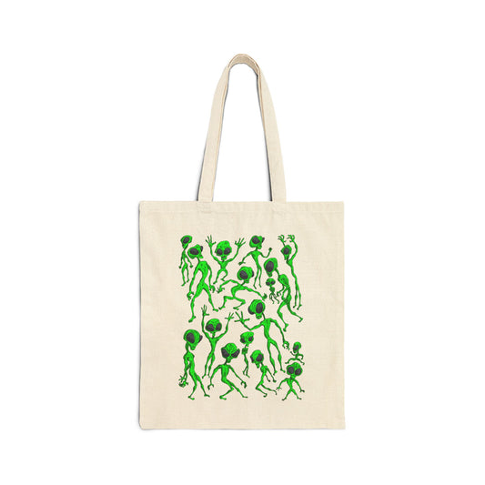 Alien Dance Party - Canvas Tote Bag — Playful Dancing Green Aliens Illustration Tote