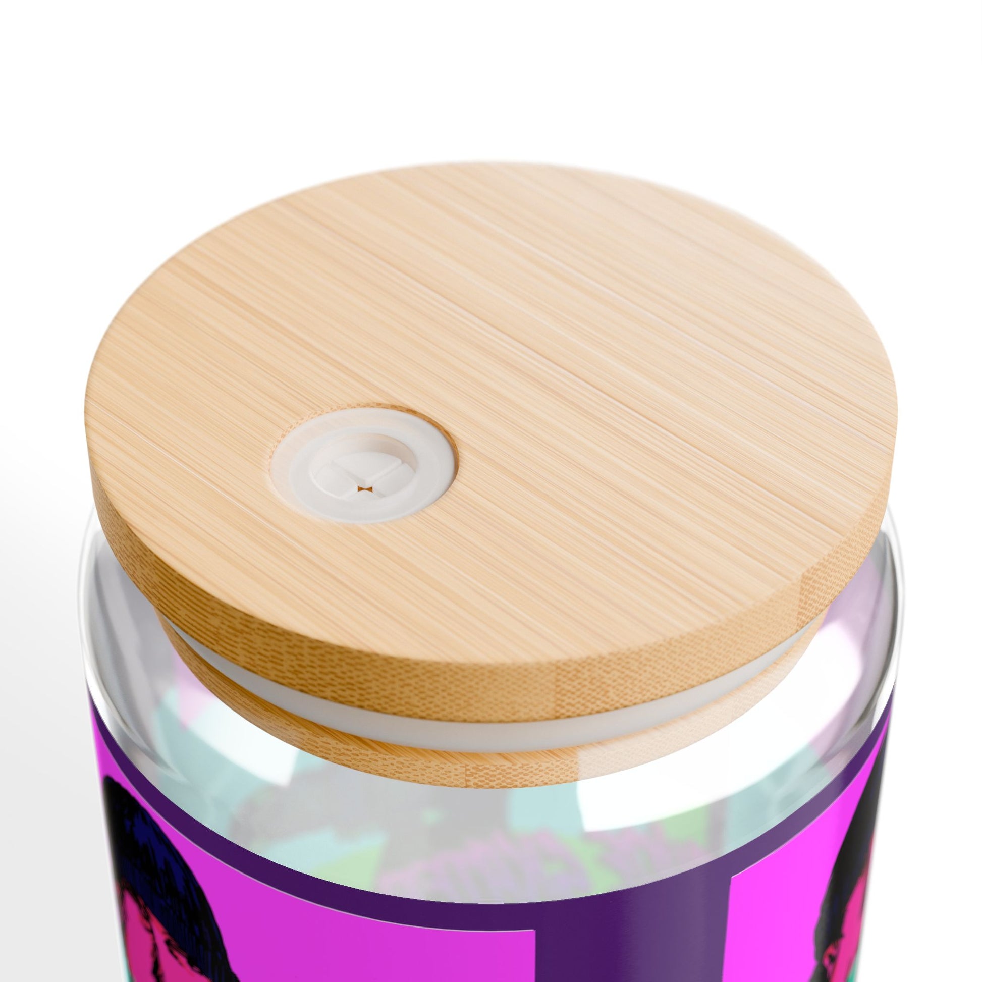 Bright, playful sipper glass that brings bold color and personality to everyday drinks. The clear tempered glass showcases a vivid, pop-art style wraparound design in neon pinks, teals, and purples. Choose the natural bamboo push-gasket lid with a durable Tritan straw for a finished, portable look, or go lid-free for casual countertop use. Lightweight and BPA-free, this 16 oz glass was crafted in the USA from globally sourced materials. Hand wash recommended to keep the colors crisp and the bamboo lid looking its best.