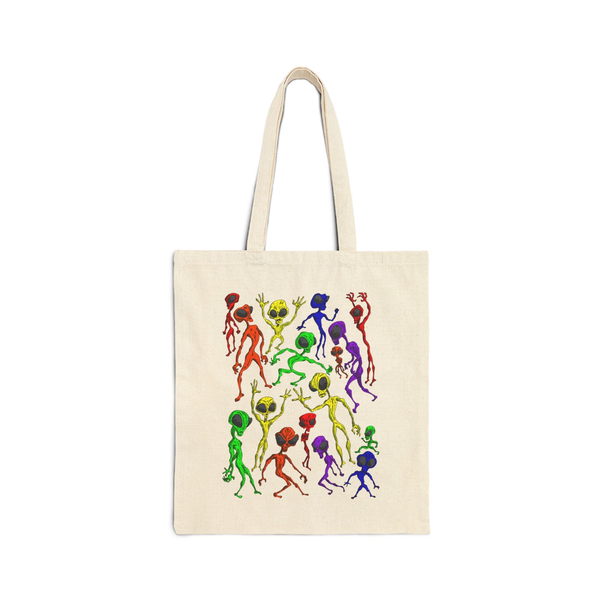 Alien Dance Party Canvas Tote Bag — Colorful Dancing Aliens Graphic Eco Shopper