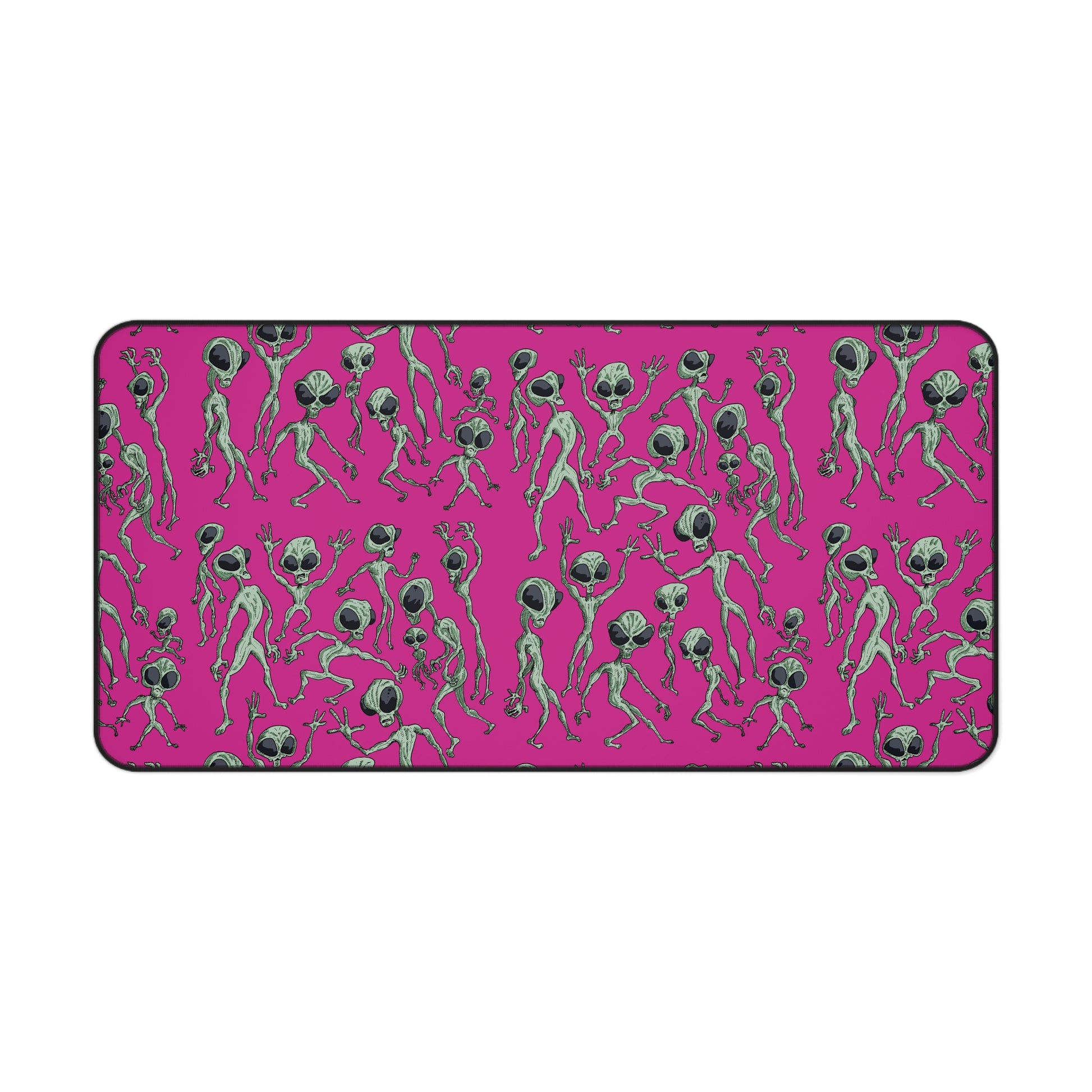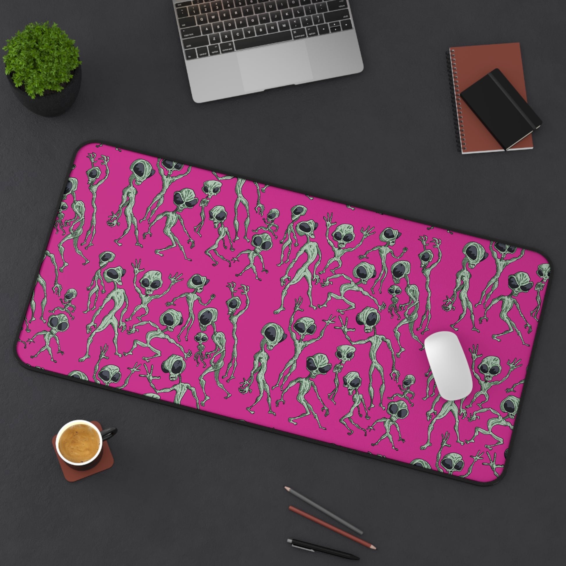 Alien Dance Party Desk Mat - Vibrant Pink Cosmic Sci-Fi Outer Space Intergalactic
