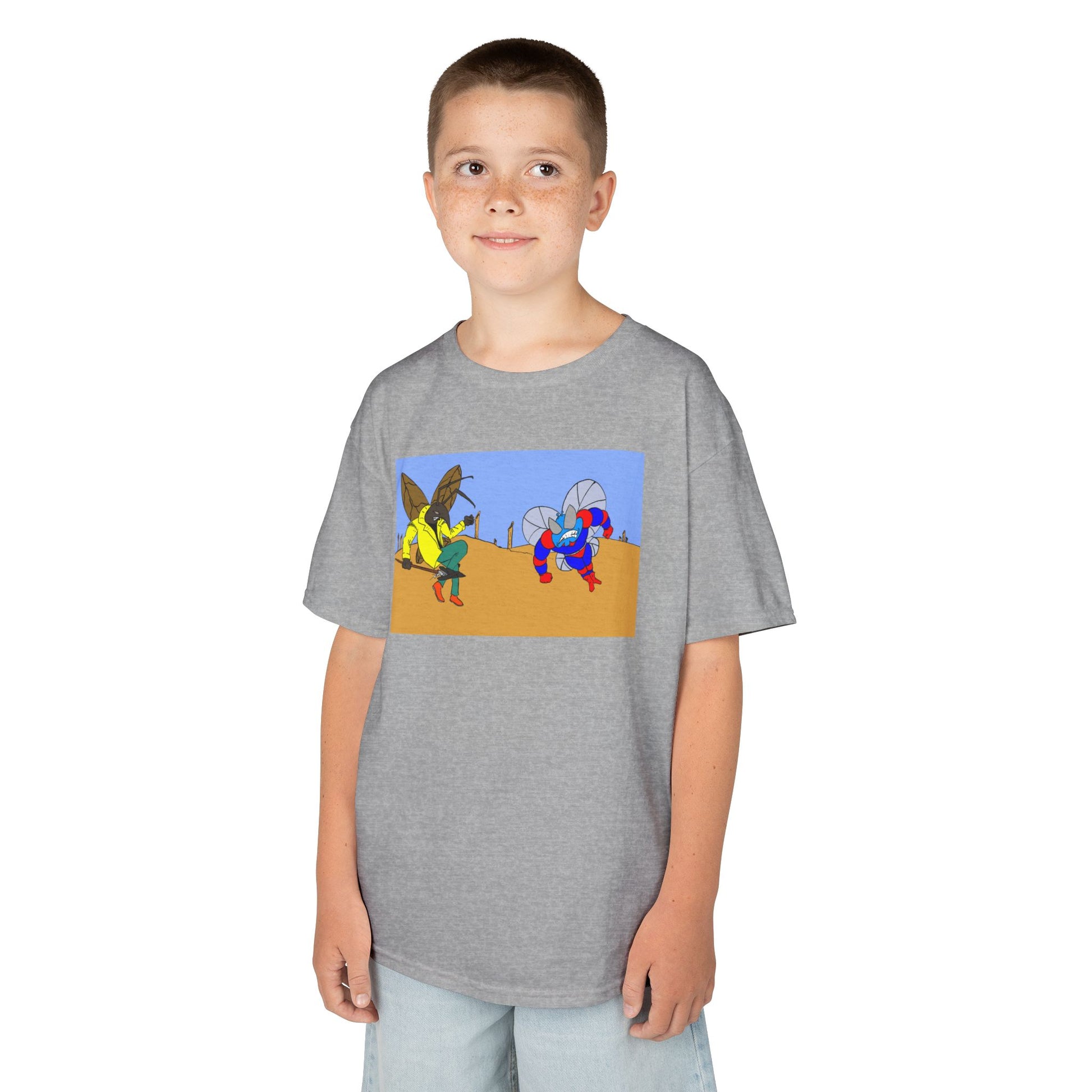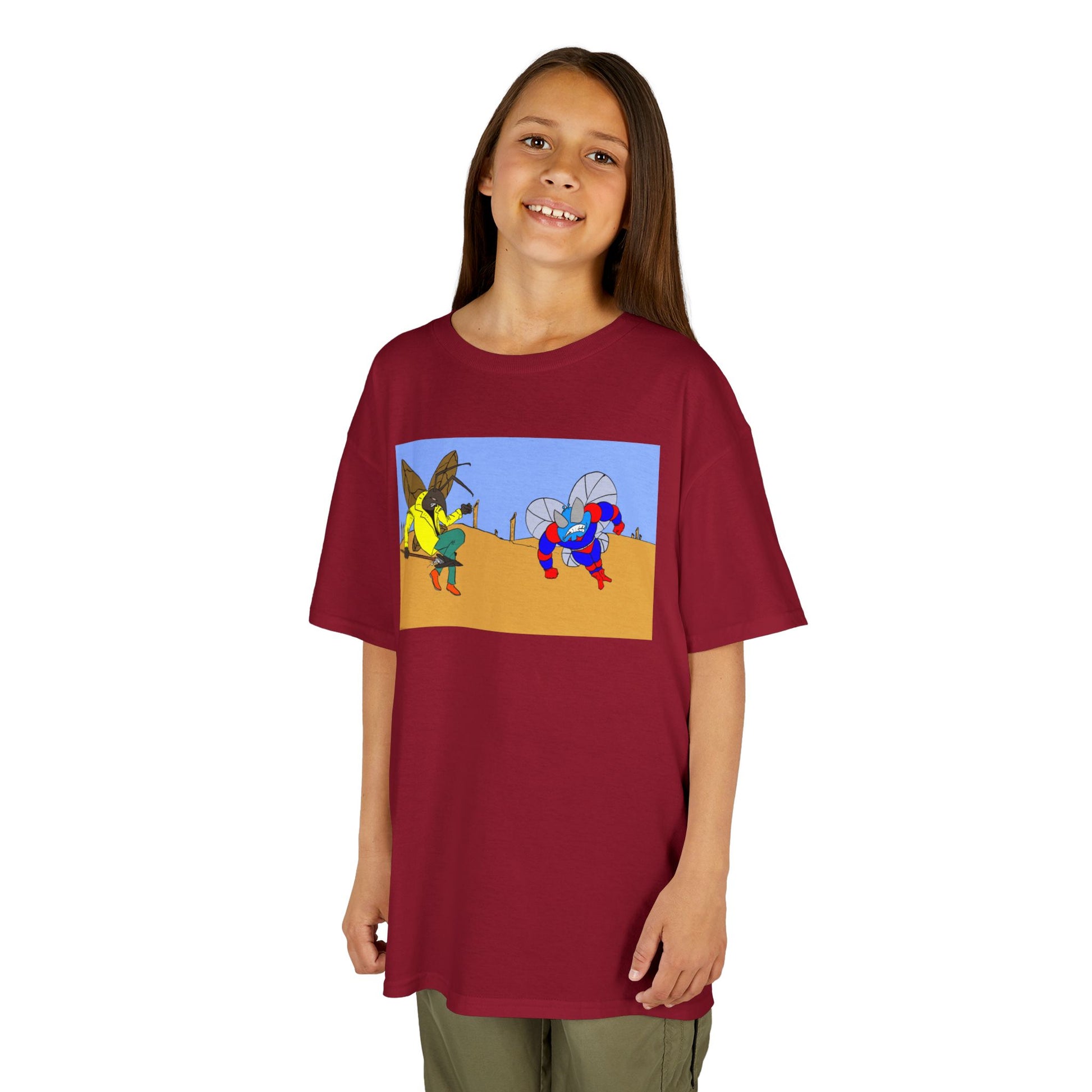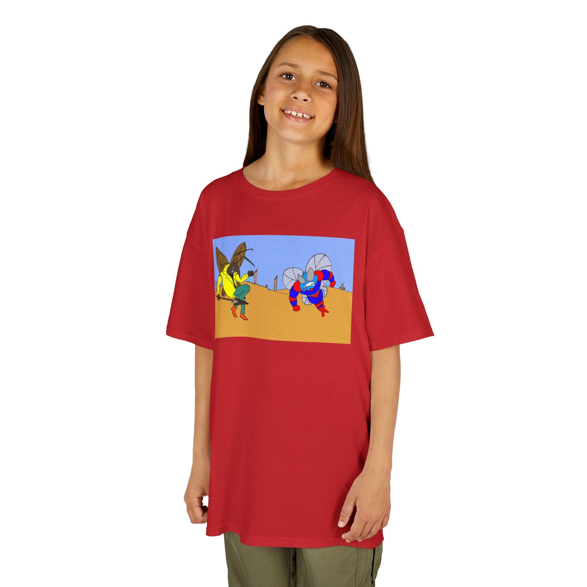 Astro-Fly and Wasp Warrior Kids Tee — Colorful Desert Beetle Cartoon Illustration