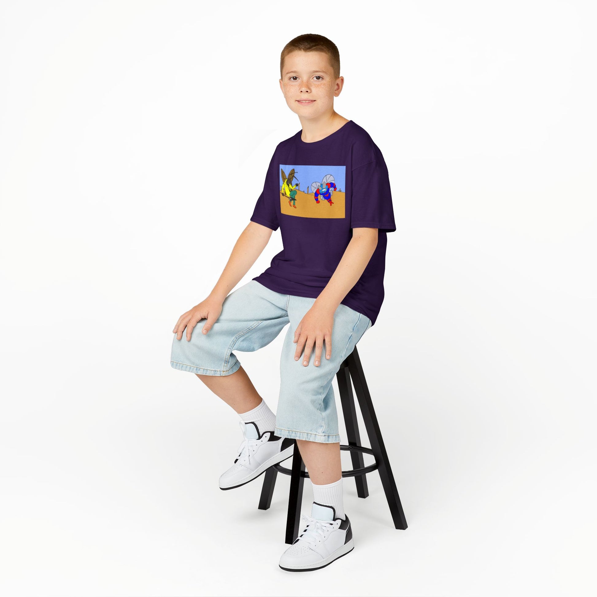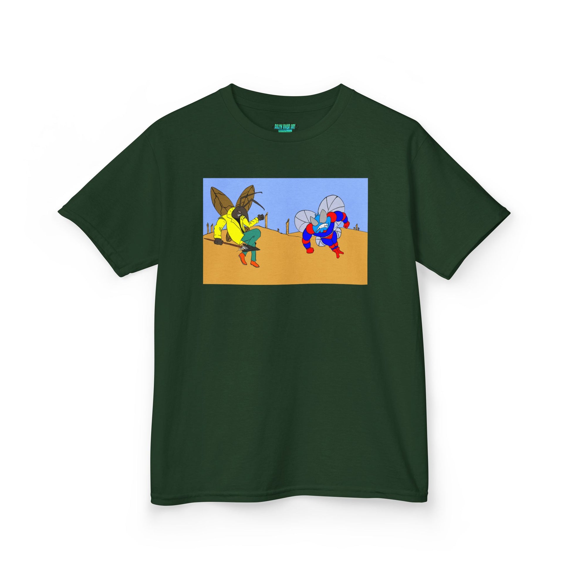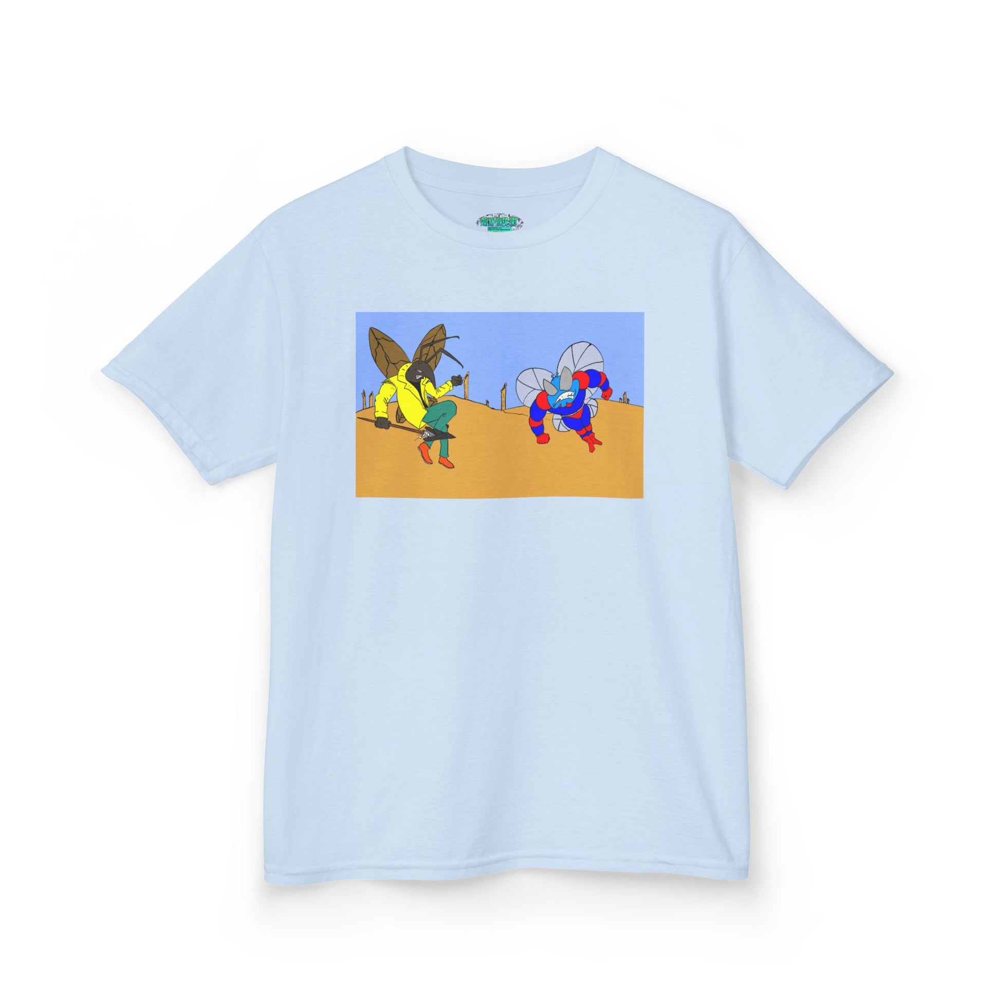 Astro-Fly and Wasp Warrior Kids Tee — Colorful Desert Beetle Cartoon Illustration