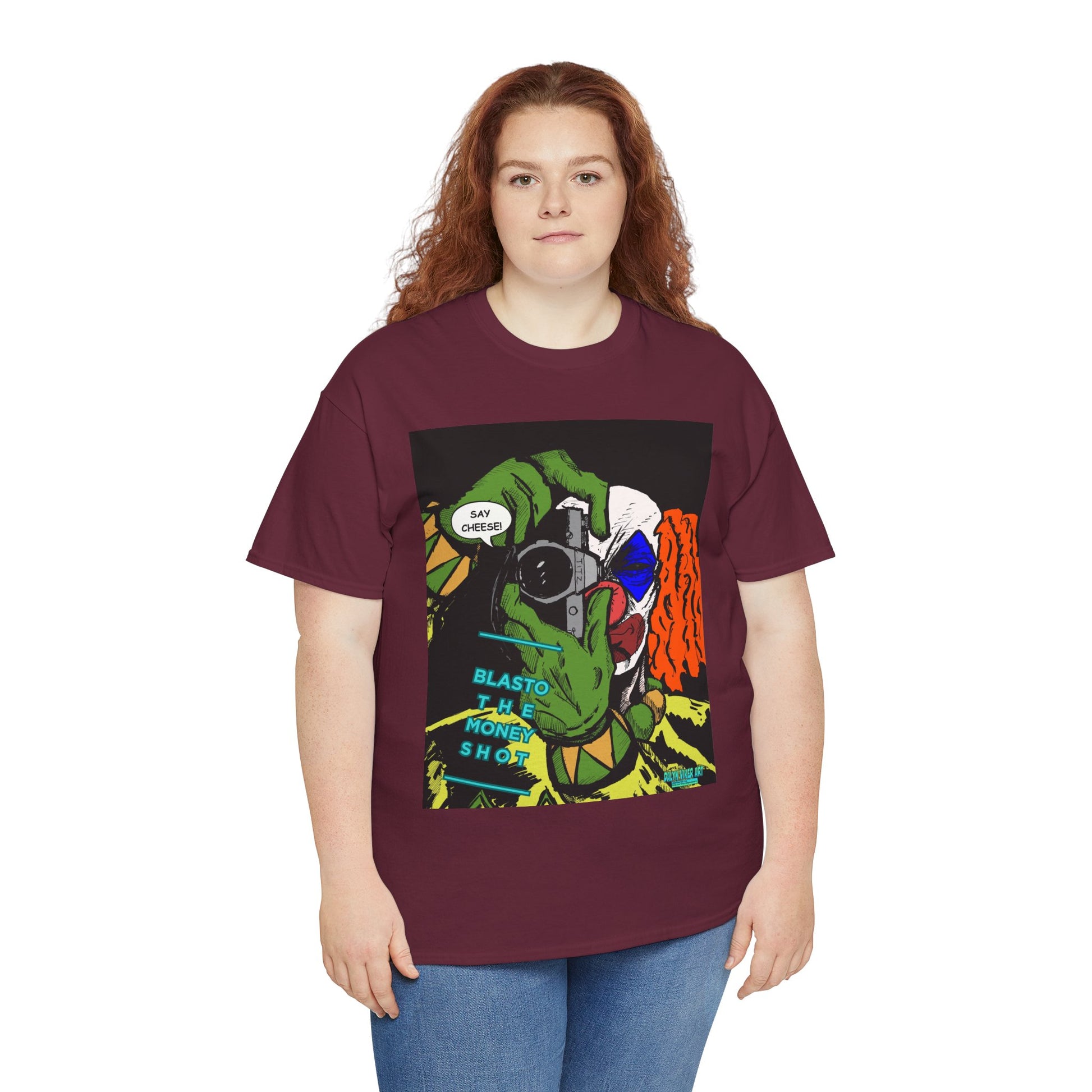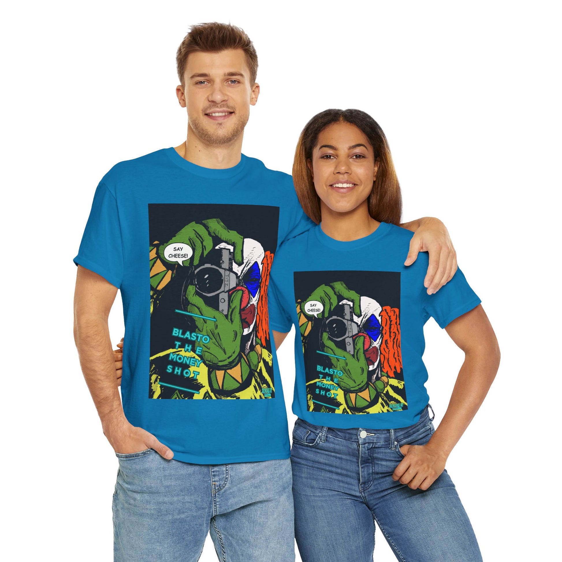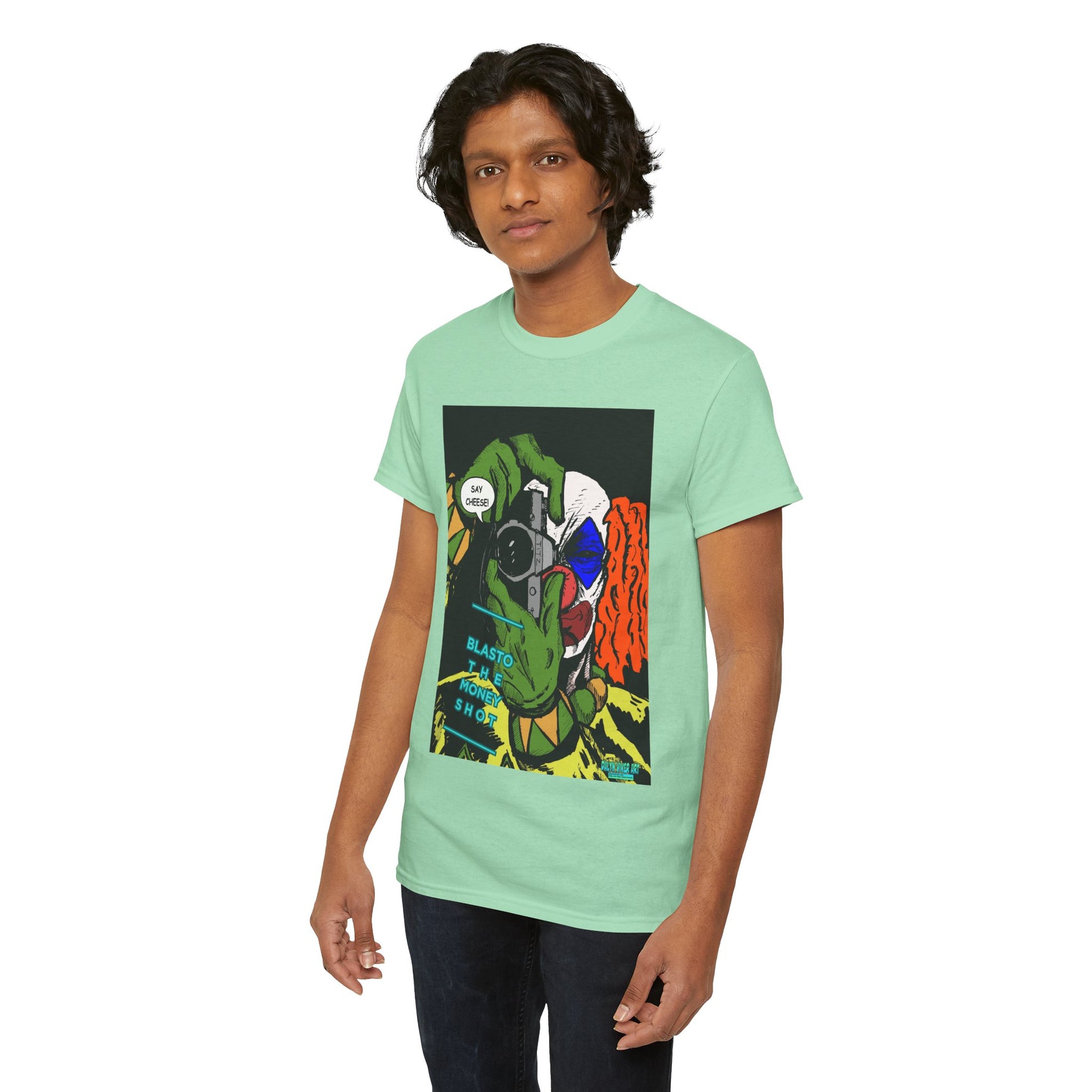 This T-Shirt features a parody design of Blasto the Clown, a gassy superhero who gained his powers by eating a cursed enchilada, paying homage to iconic comic book covers. With a classic fit and tear-away label, this T-Shirt offers year-round comfort and sustainability. Perfect for adults looking for a unique and quirky wardrobe staple, relevant for comic book fans and casual occasions.