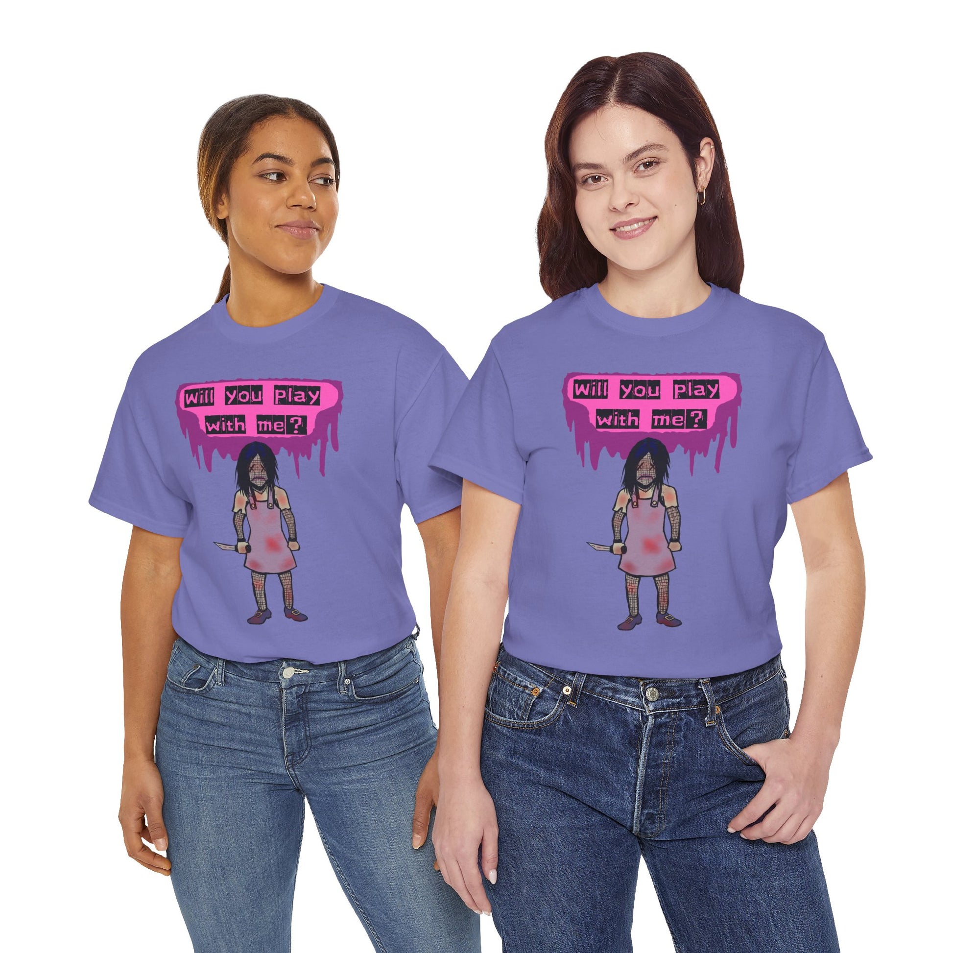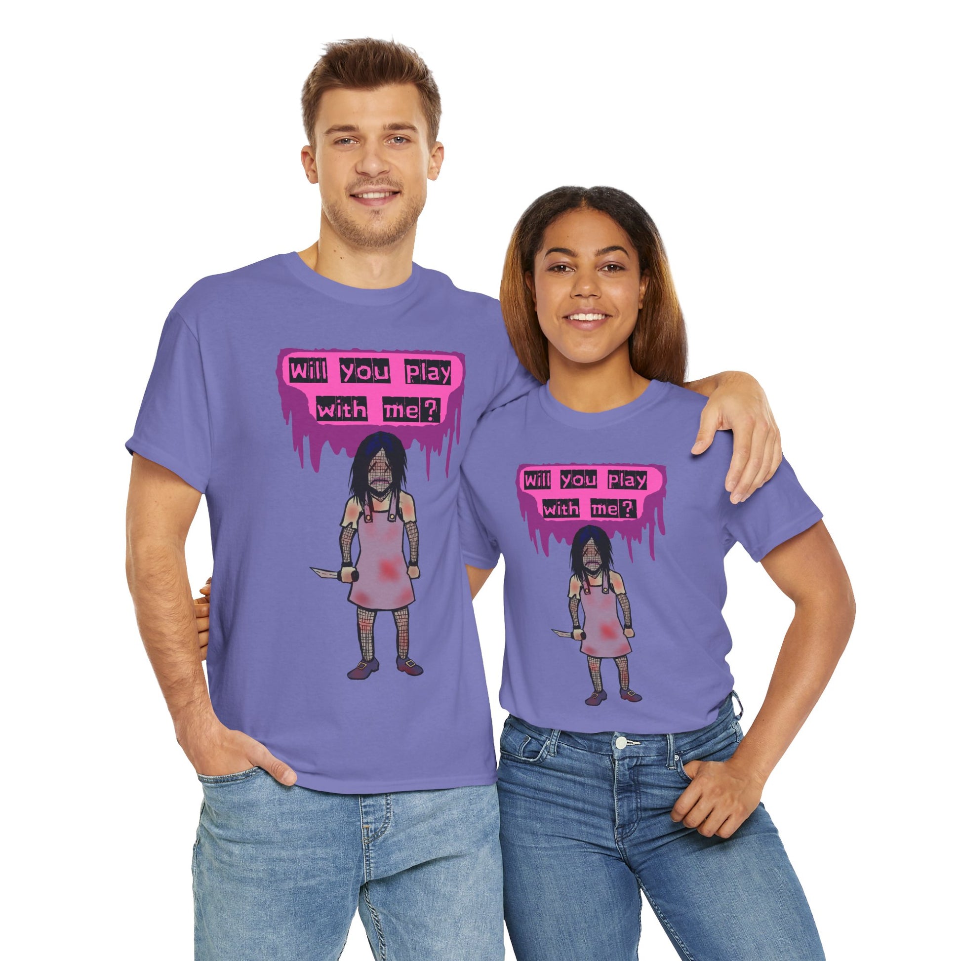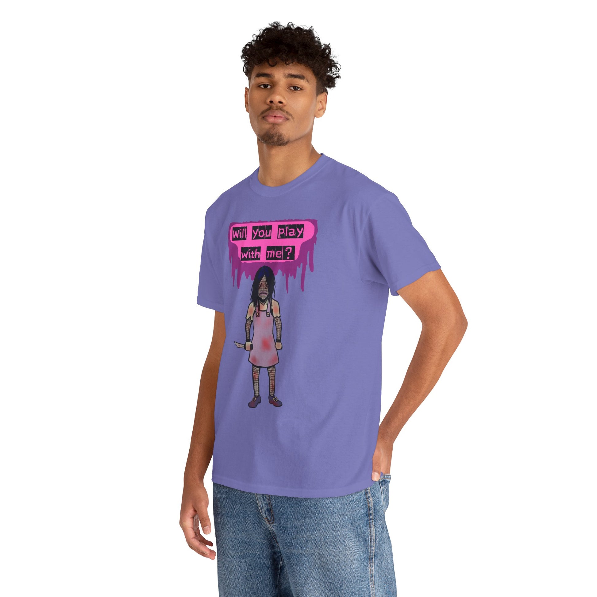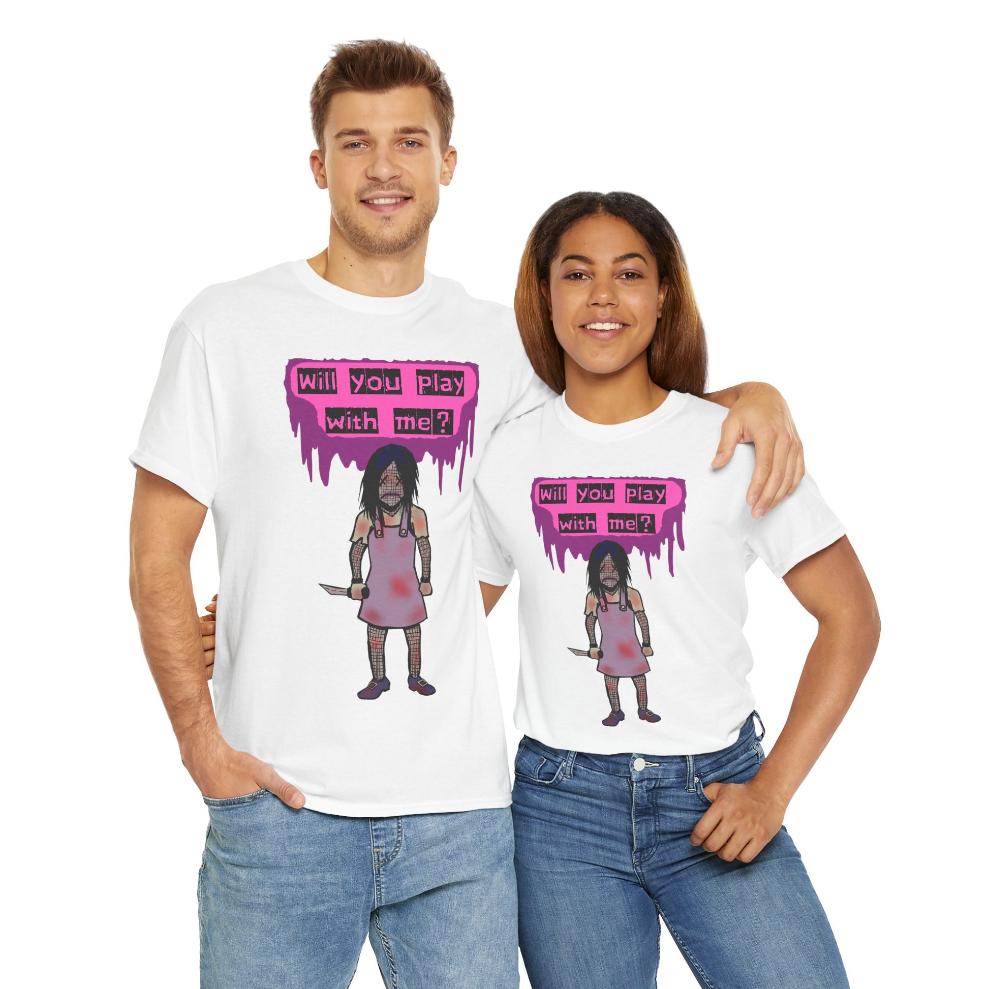 Embrace a playful yet edgy vibe with this Unisex Heavy Cotton Tee. Perfect for those who love to express their individuality, this tee features a striking design that captures attention and ignites conversation. Ideal for casual outings, music festivals, or as a unique gift for friends, it seamlessly blends comfort and style, making it an essential addition to any wardrobe. This tee is perfect for Halloween, themed events, or a casual day out with friends. It speaks to the bold and adventurous spirit within, making it a go-to choice for anyone looking to stand out.