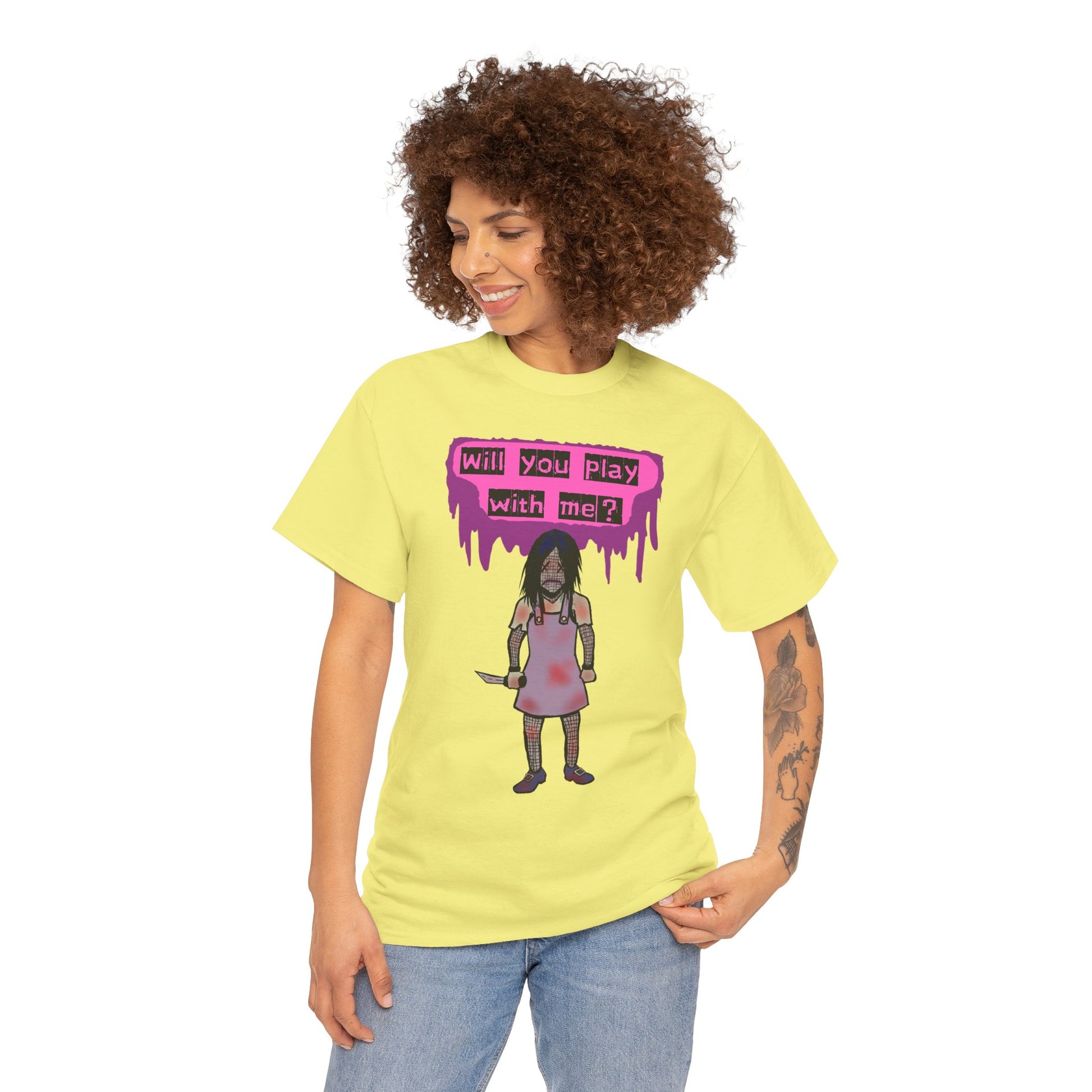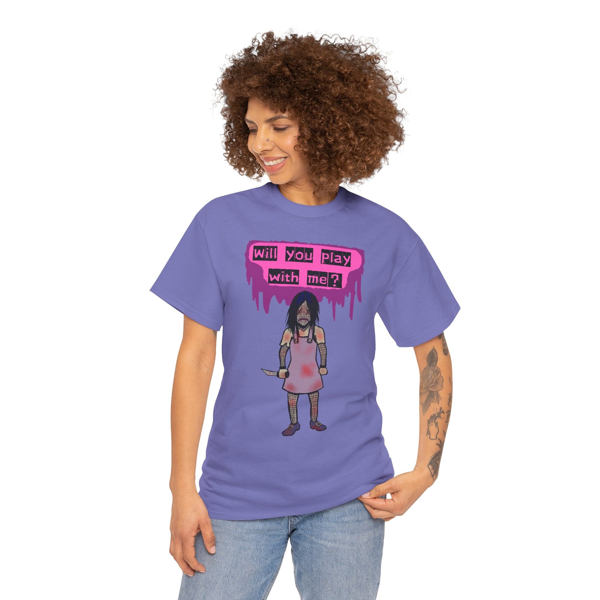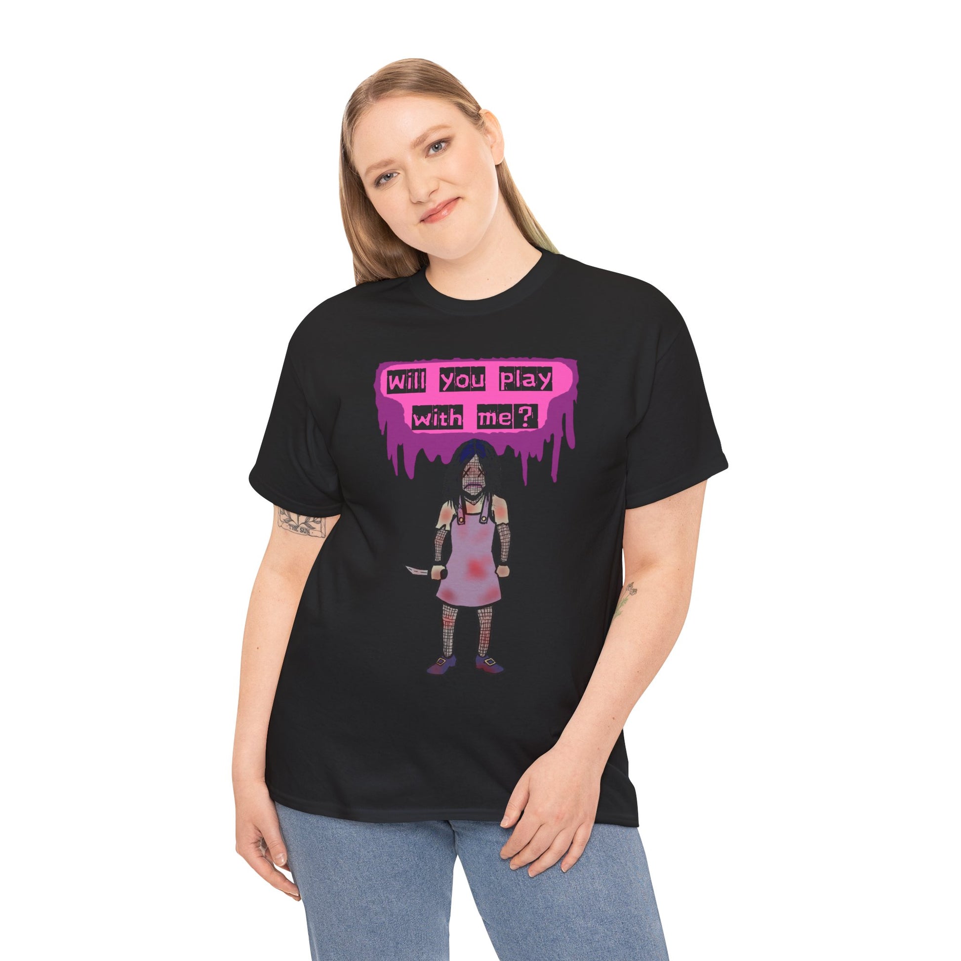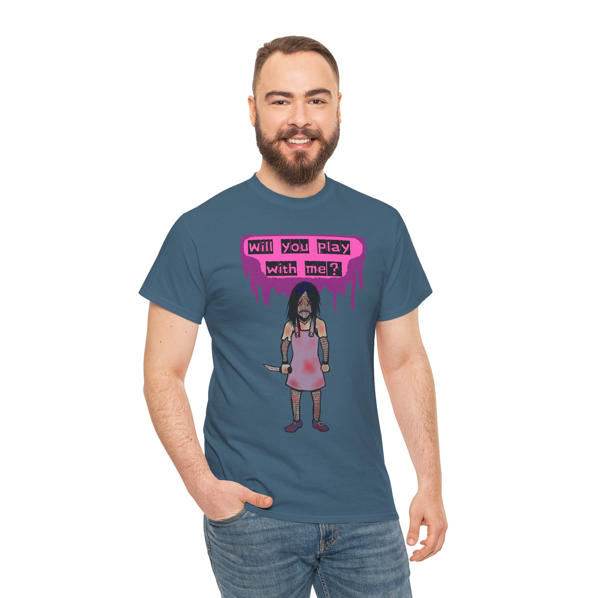 Embrace a playful yet edgy vibe with this Unisex Heavy Cotton Tee. Perfect for those who love to express their individuality, this tee features a striking design that captures attention and ignites conversation. Ideal for casual outings, music festivals, or as a unique gift for friends, it seamlessly blends comfort and style, making it an essential addition to any wardrobe. This tee is perfect for Halloween, themed events, or a casual day out with friends. It speaks to the bold and adventurous spirit within, making it a go-to choice for anyone looking to stand out.
