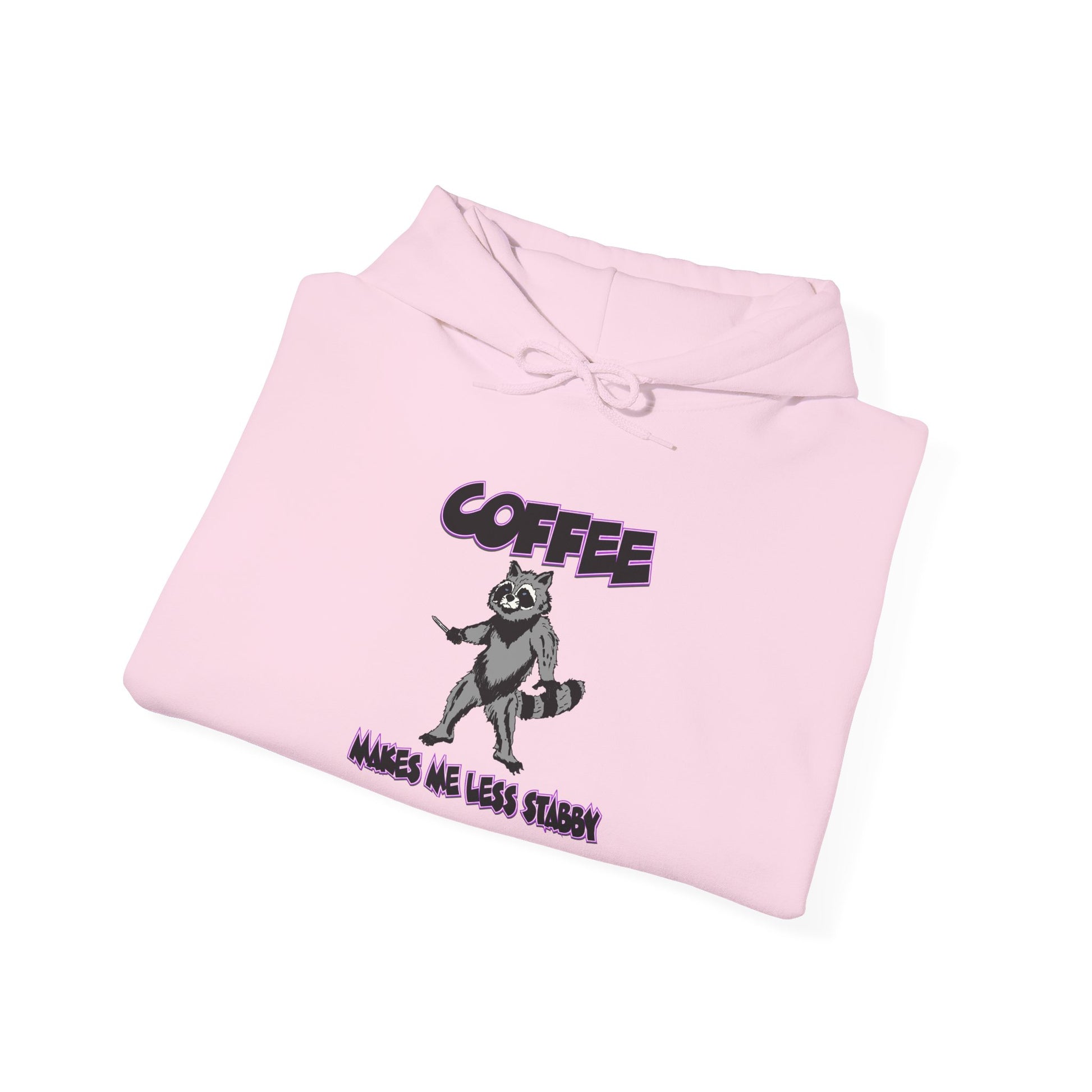Coffee Makes Me Less Stabby Themed Unisex Hoodie with Fun Raccoon Design, Perfect for Coffee Lovers, Gift for Birthdays, Chill Days, Cozy Sweater