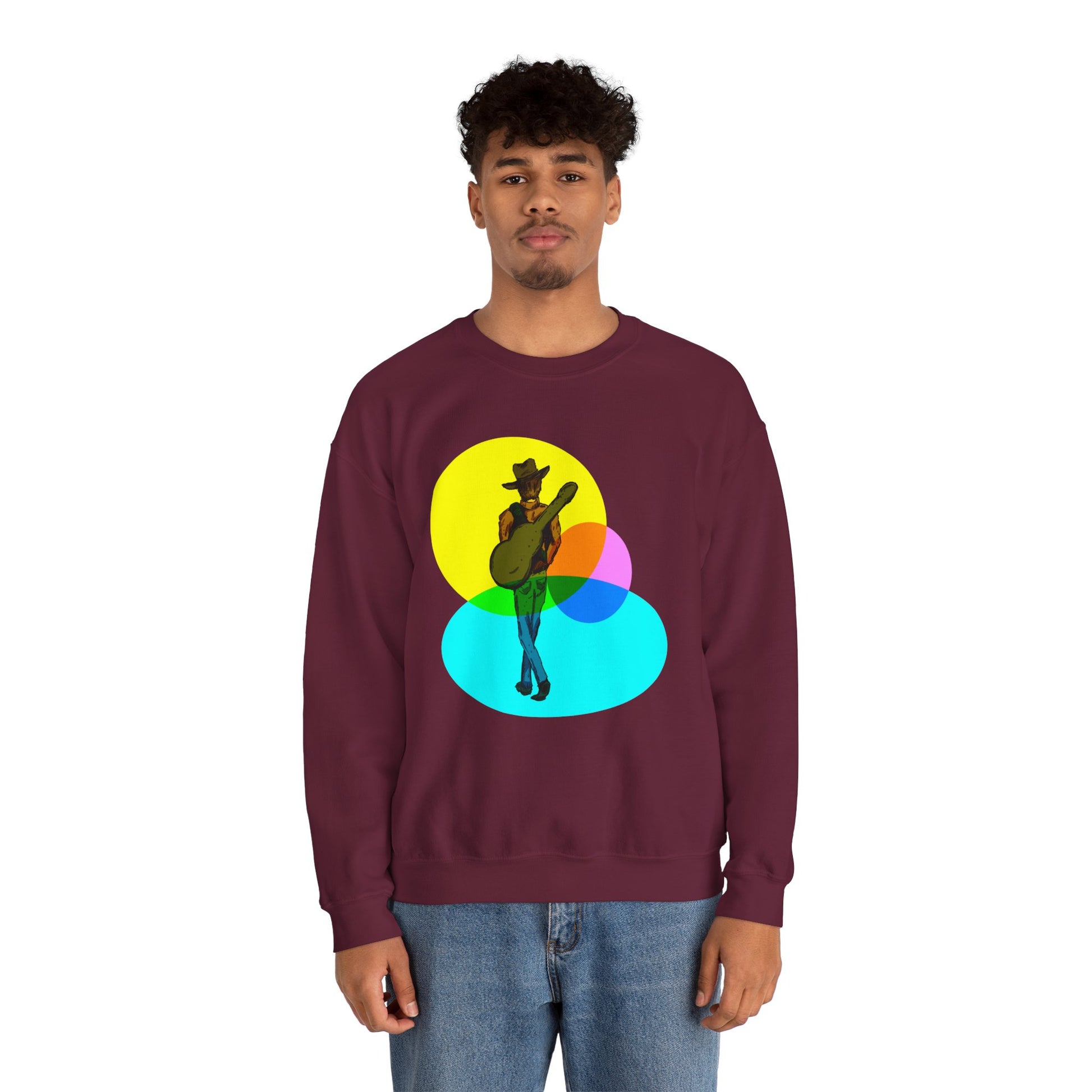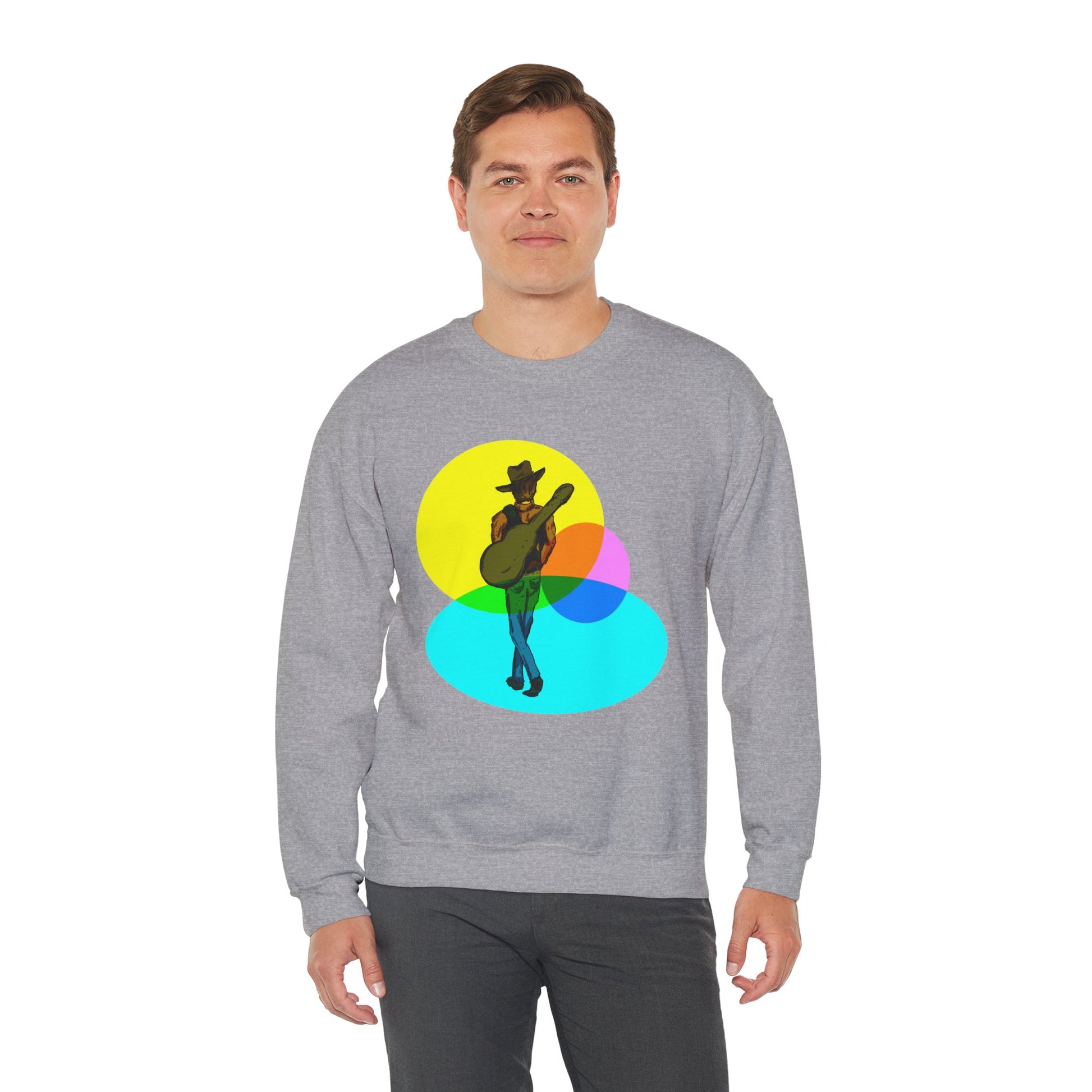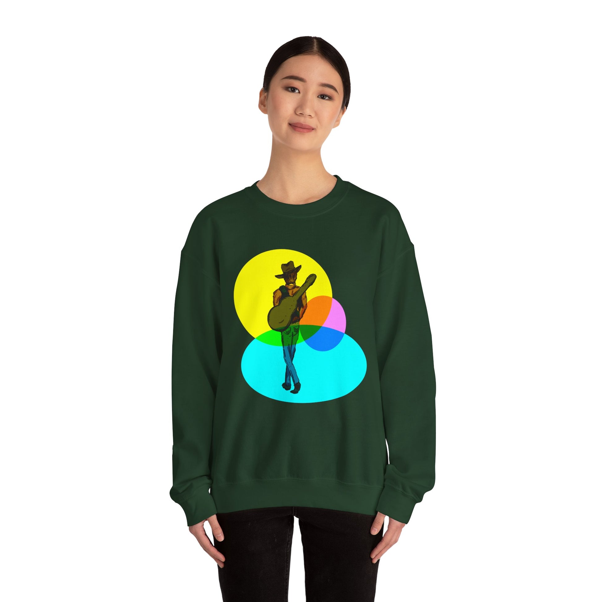Cowboy Guitarist Graphic Sweatshirt — Retro Color Spot Music Pullover