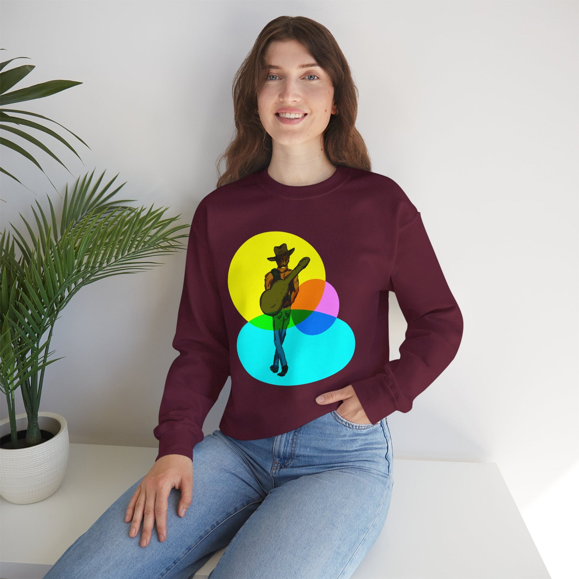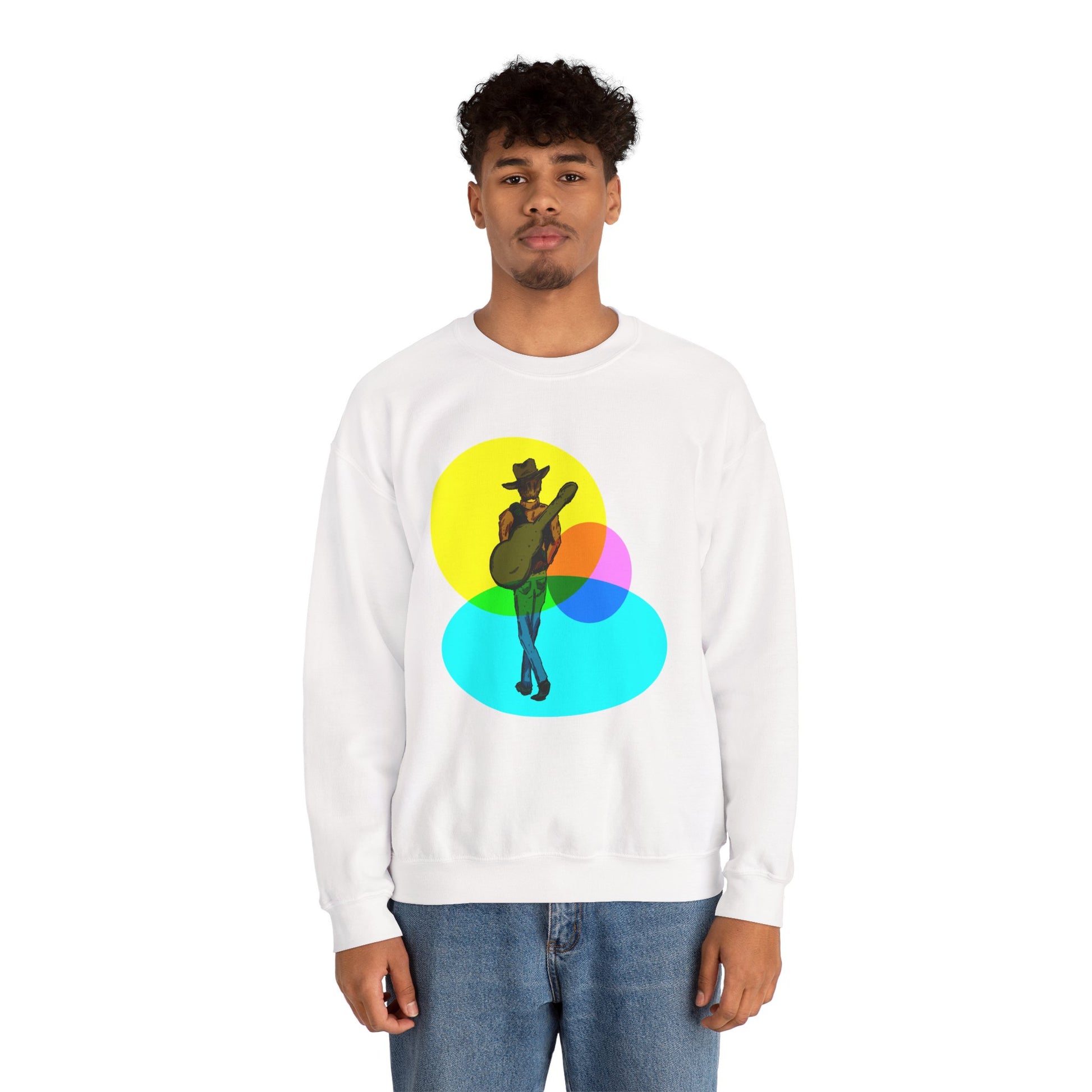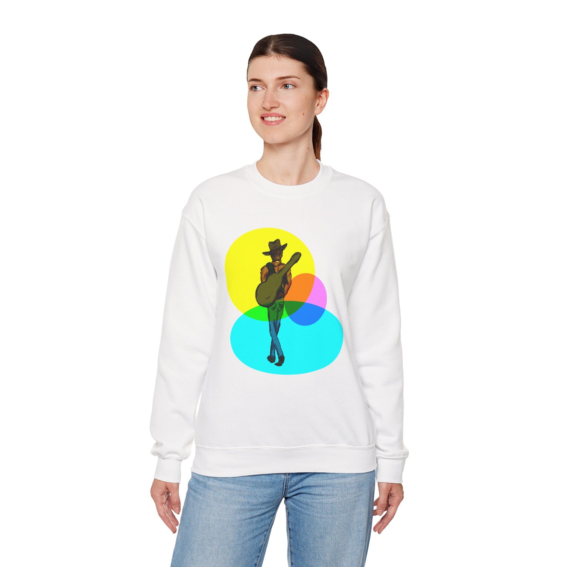 Cowboy Guitarist Graphic Sweatshirt — Retro Color Spot Music Pullover