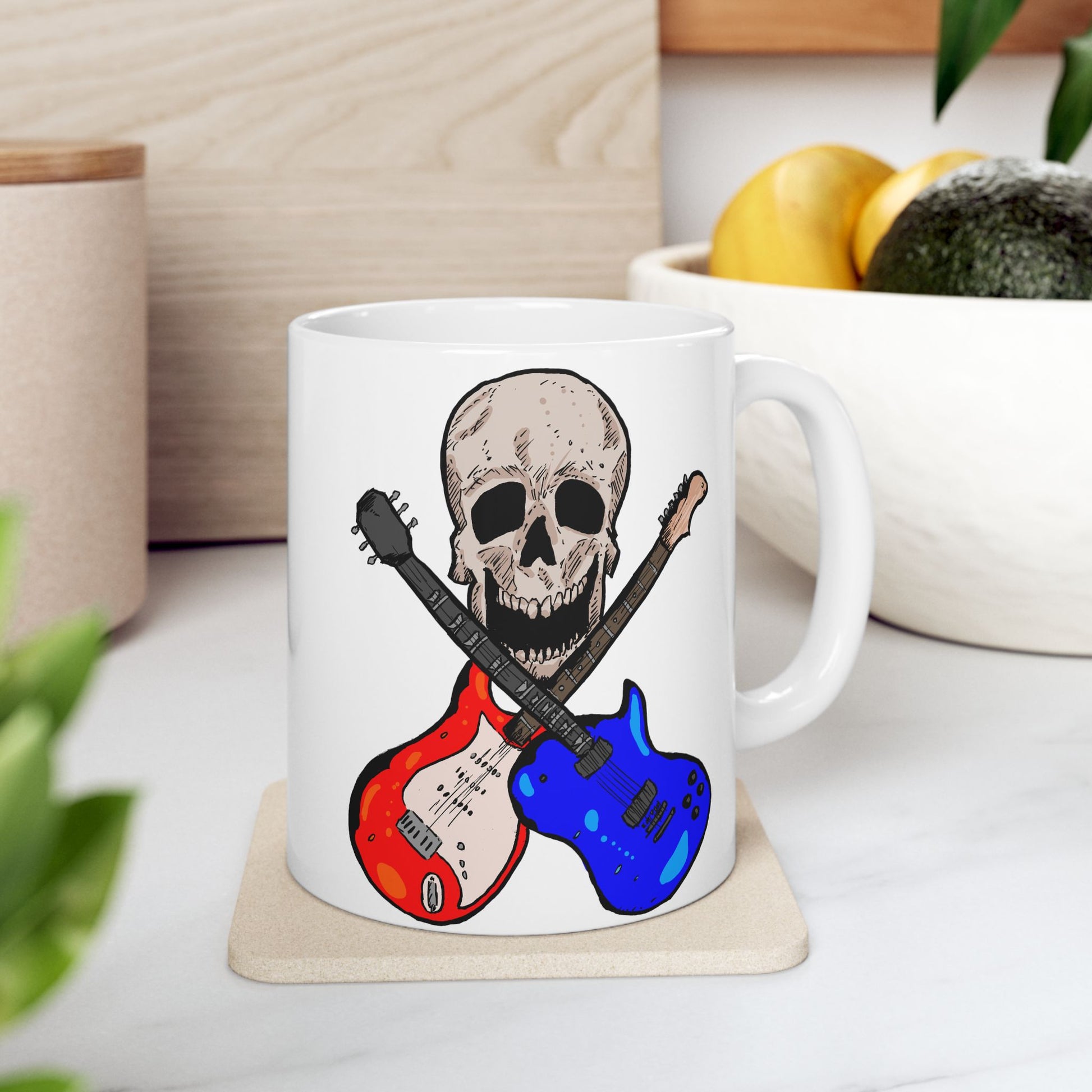 Deathly Rock & Roll Ceramic Mug - Perfect for Musicians, Coffee Lovers, Gifts for Guitarists, Home Decor, Birthday Celebration