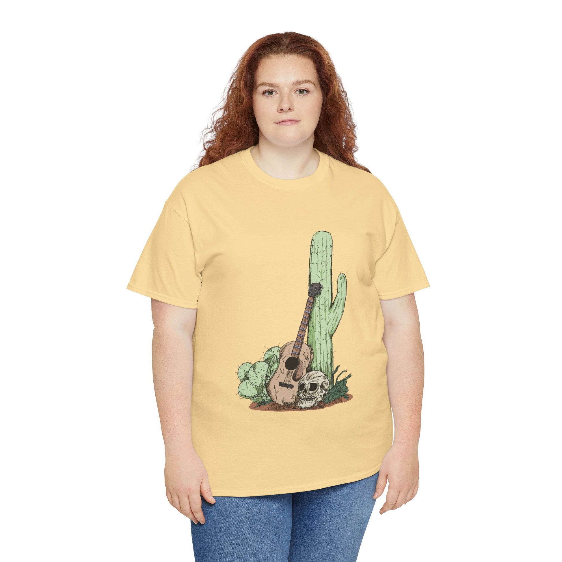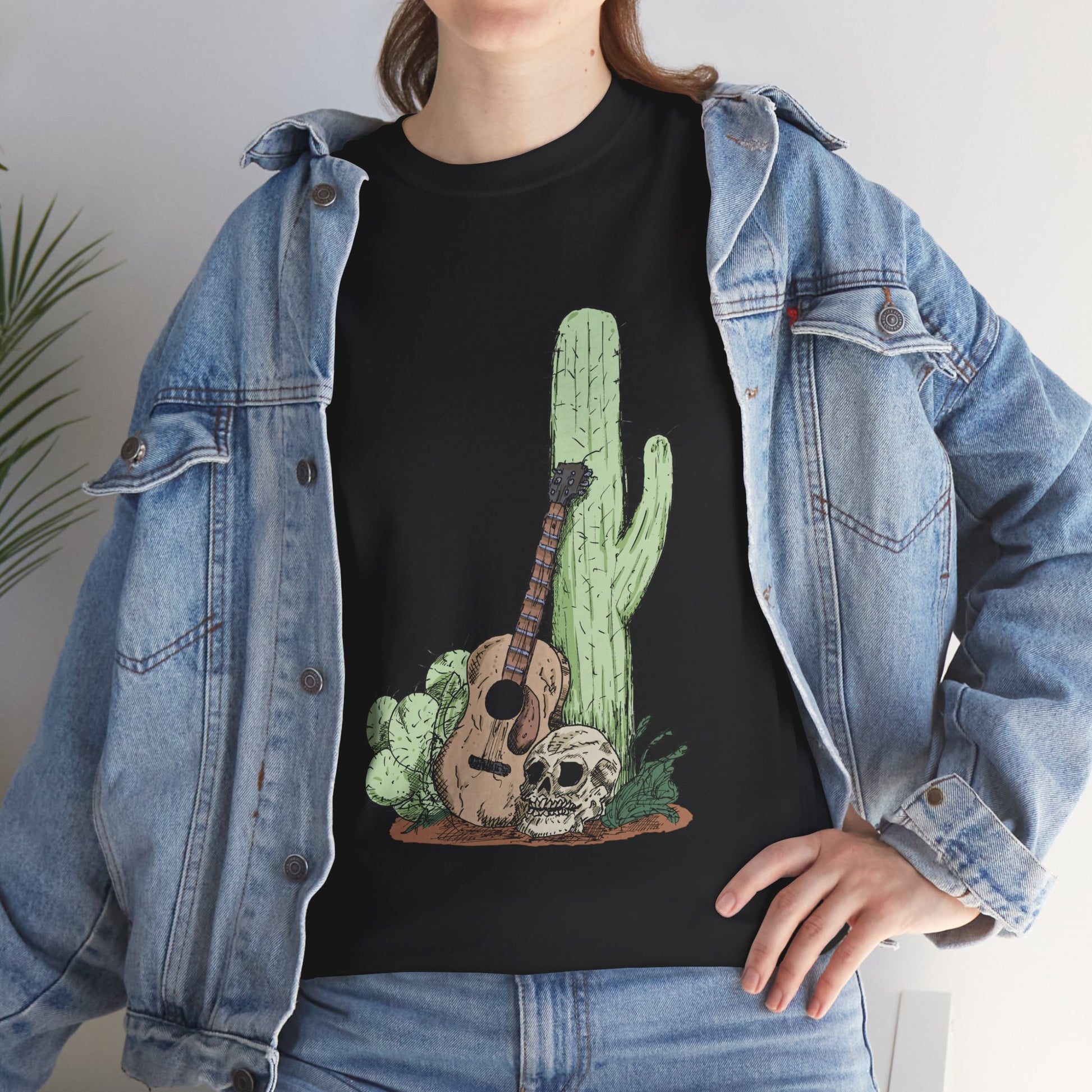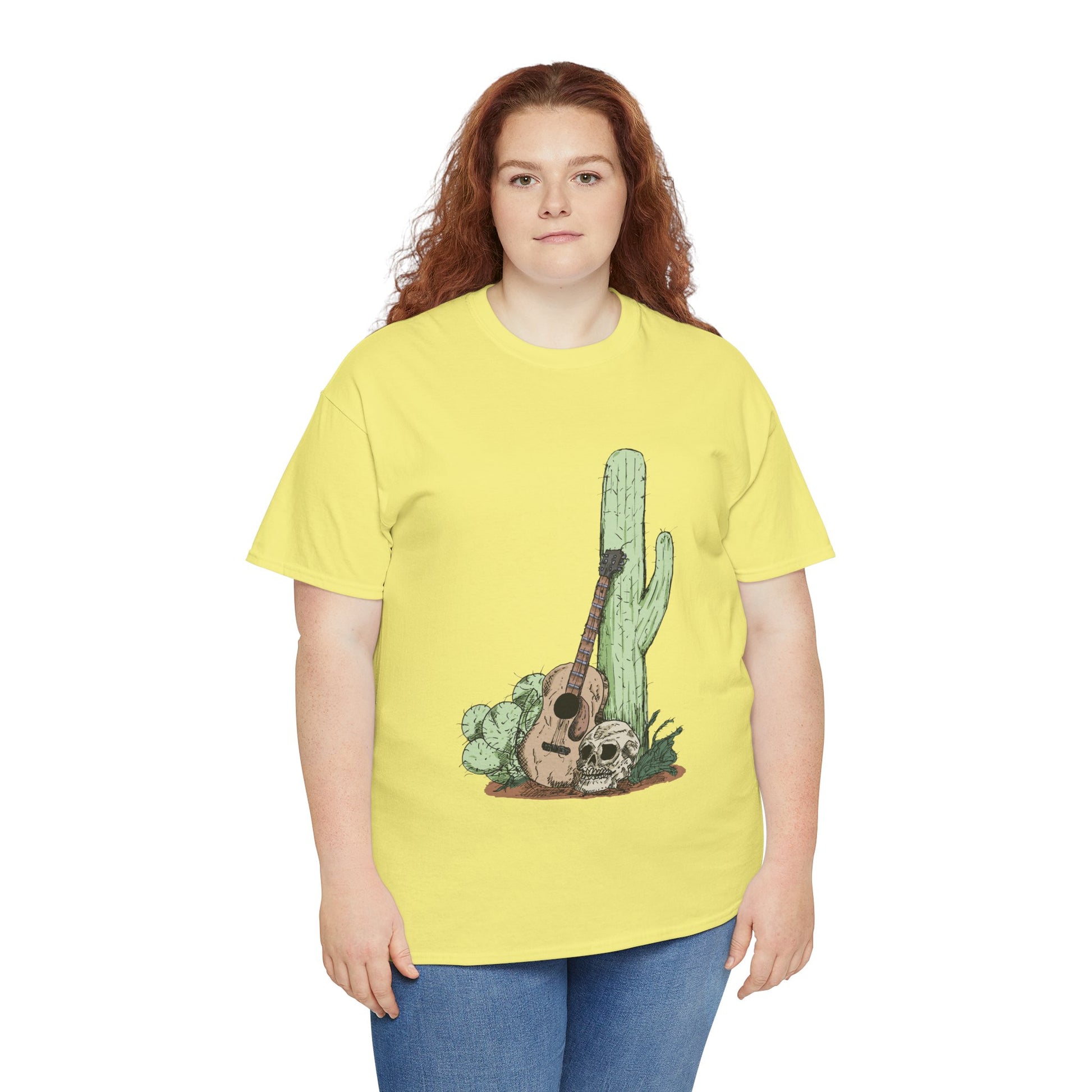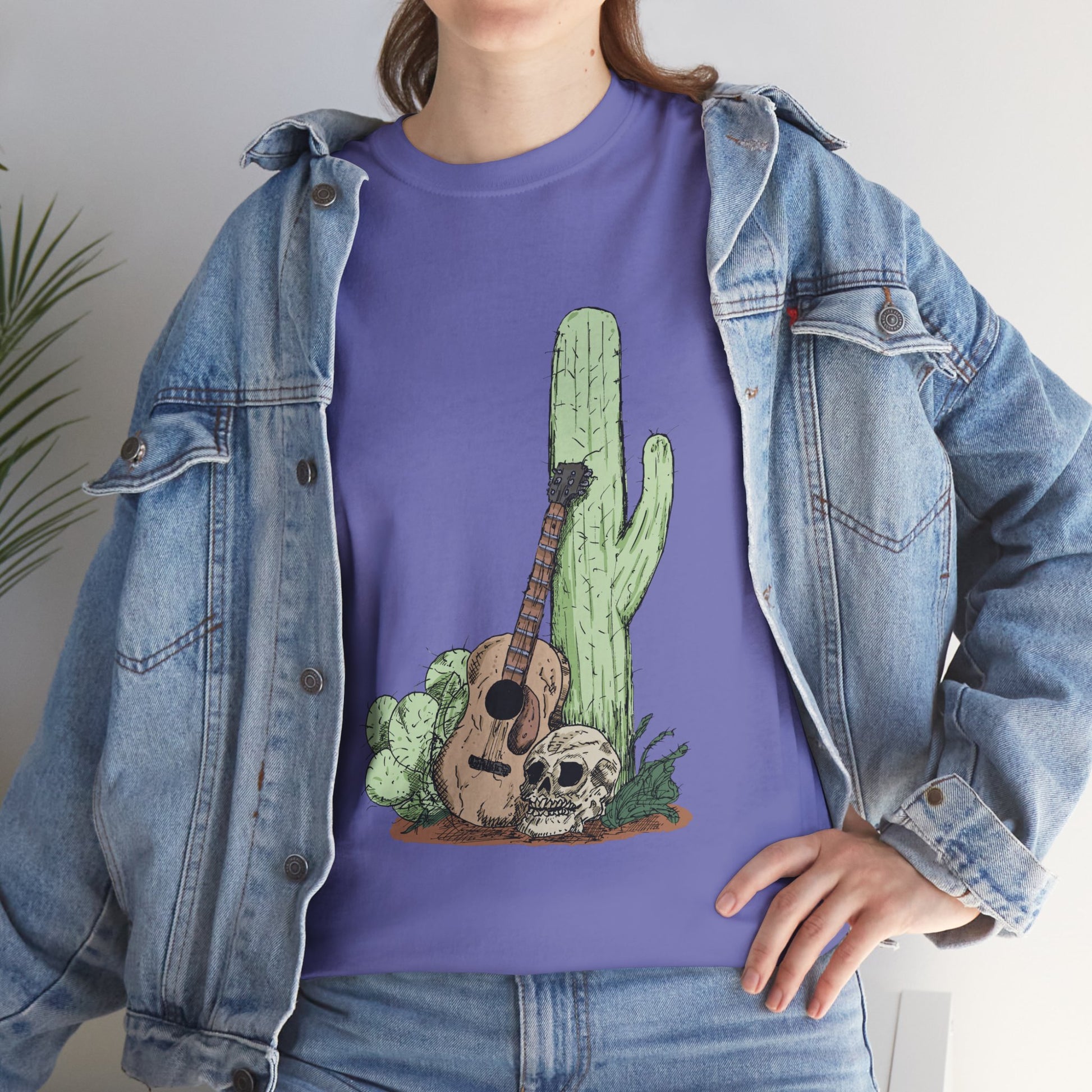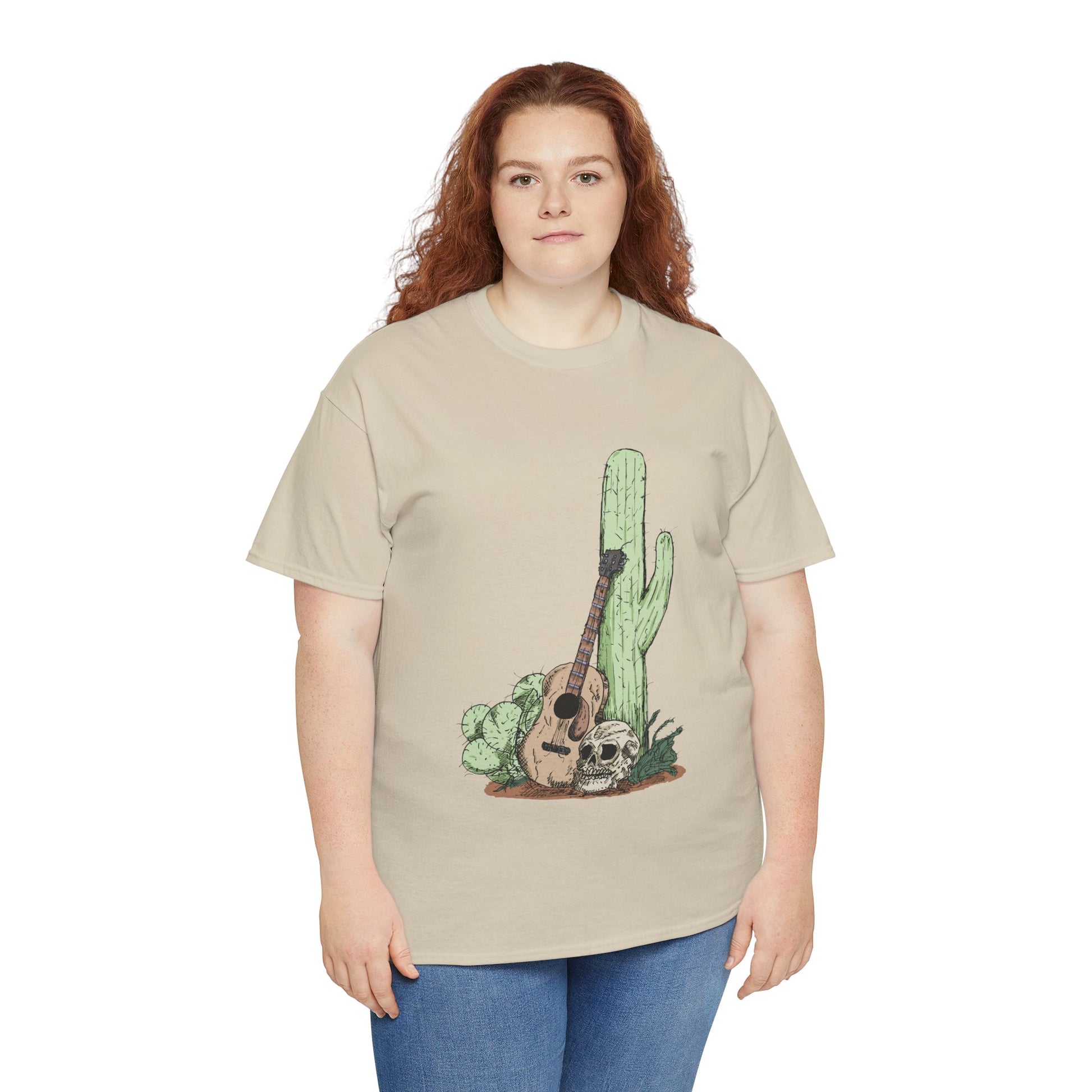 Desert Vibe Graphic Tee - Unisex Heavy Cotton Shirt, Boho Cactus Shirt, Guitar Lover's Gift, Summer Top, Music T-Shirt