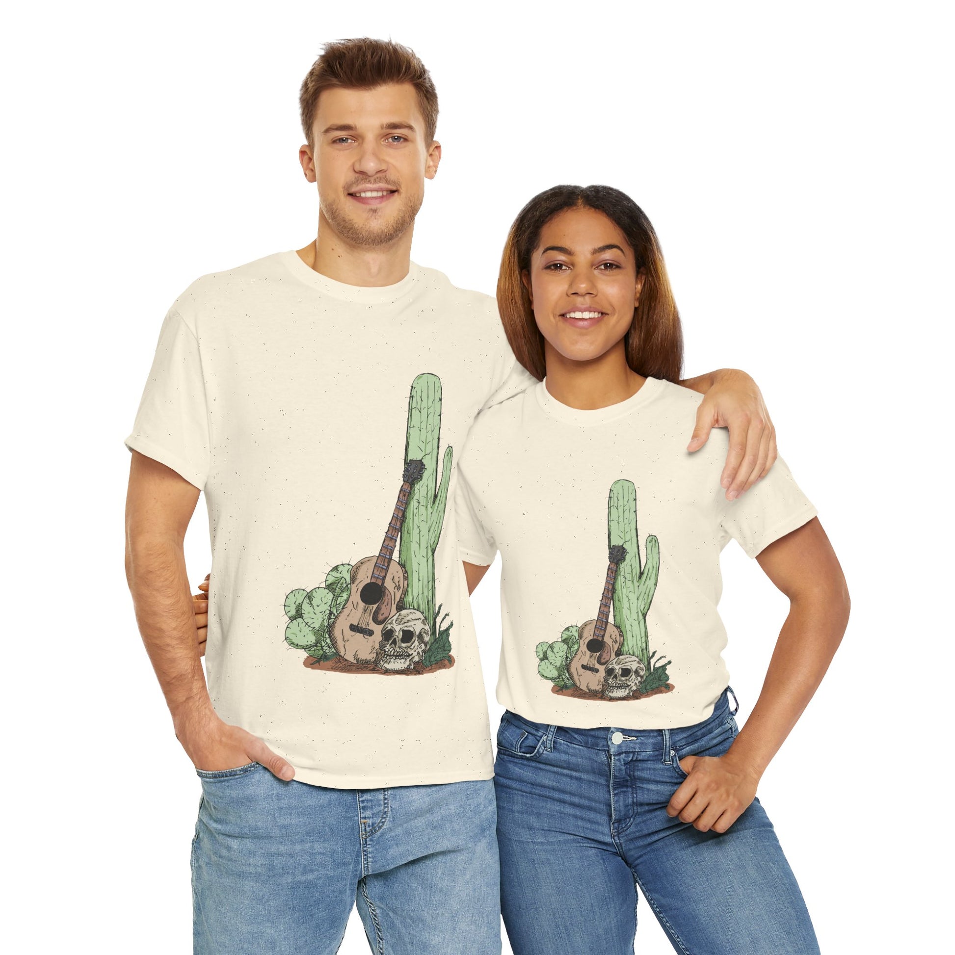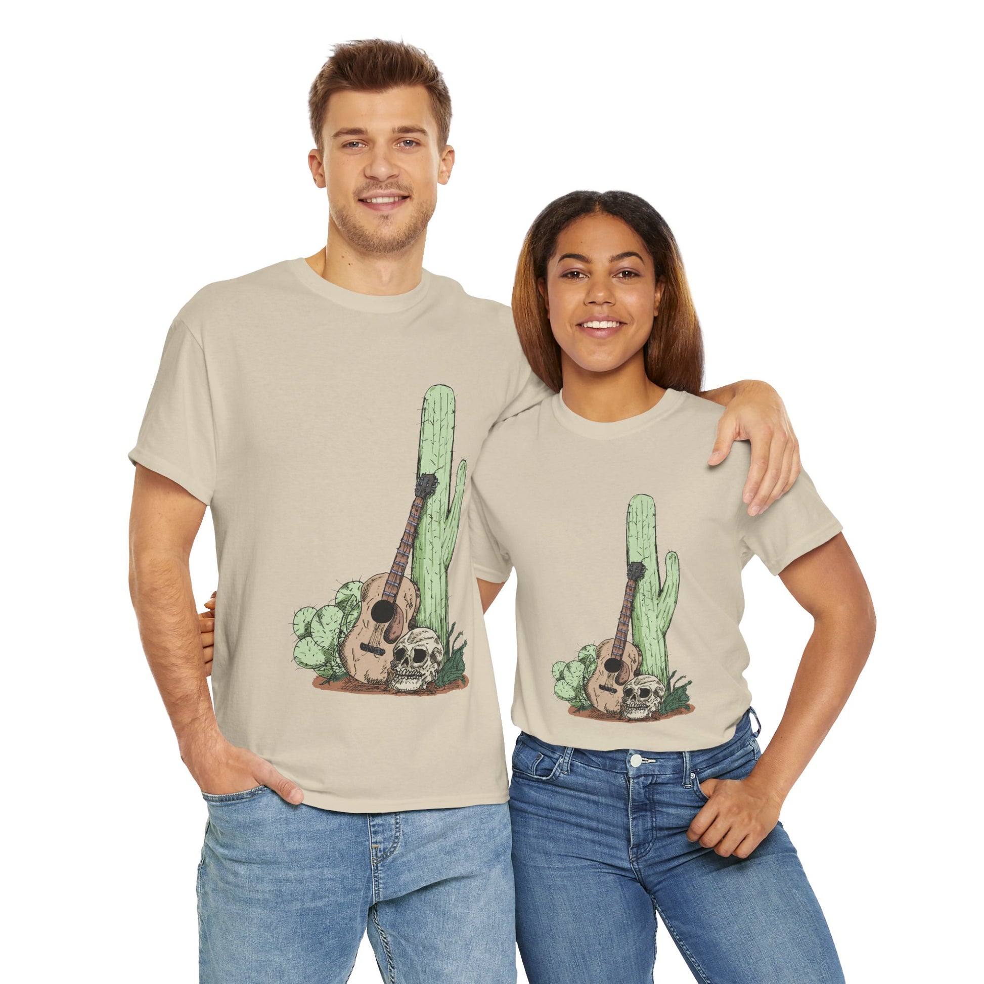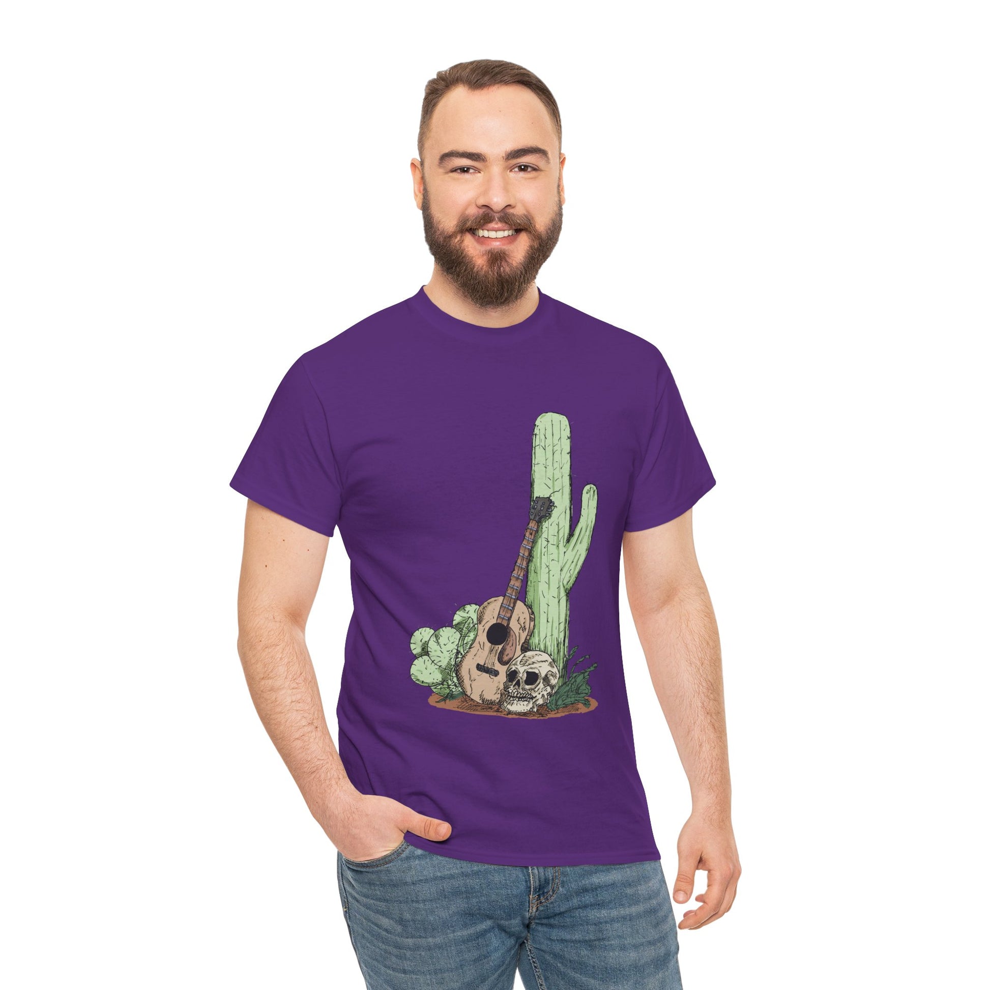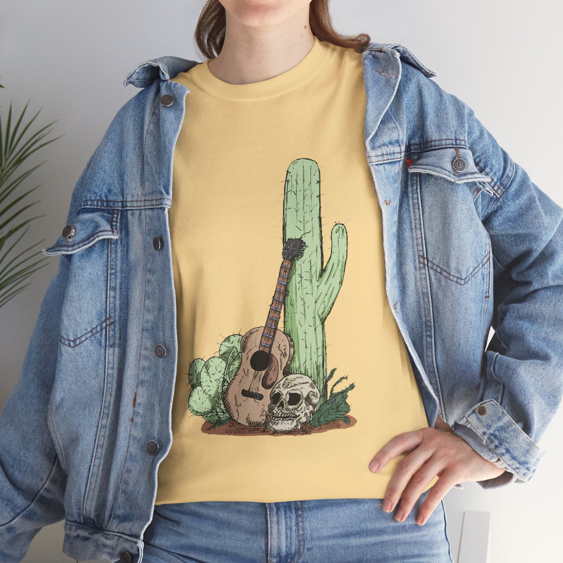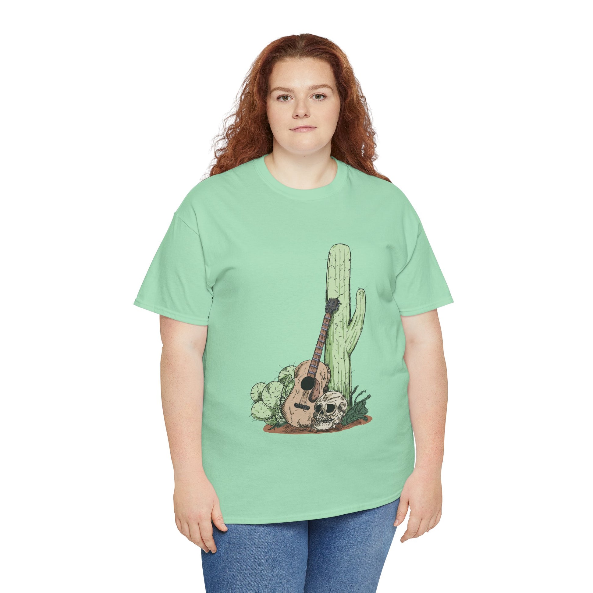 Desert Vibe Graphic Tee - Unisex Heavy Cotton Shirt, Boho Cactus Shirt, Guitar Lover's Gift, Summer Top, Music T-Shirt