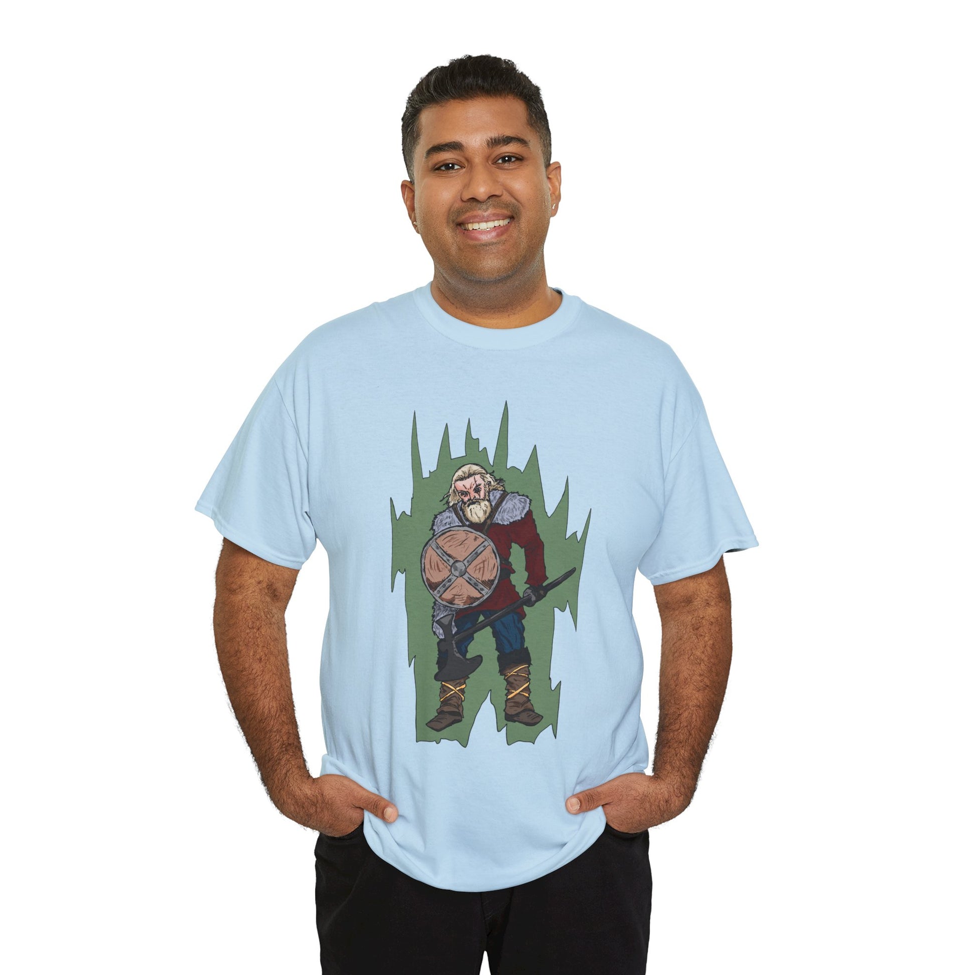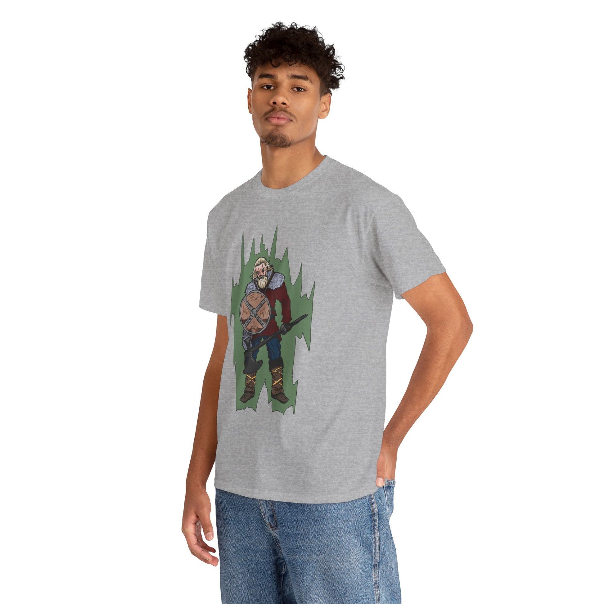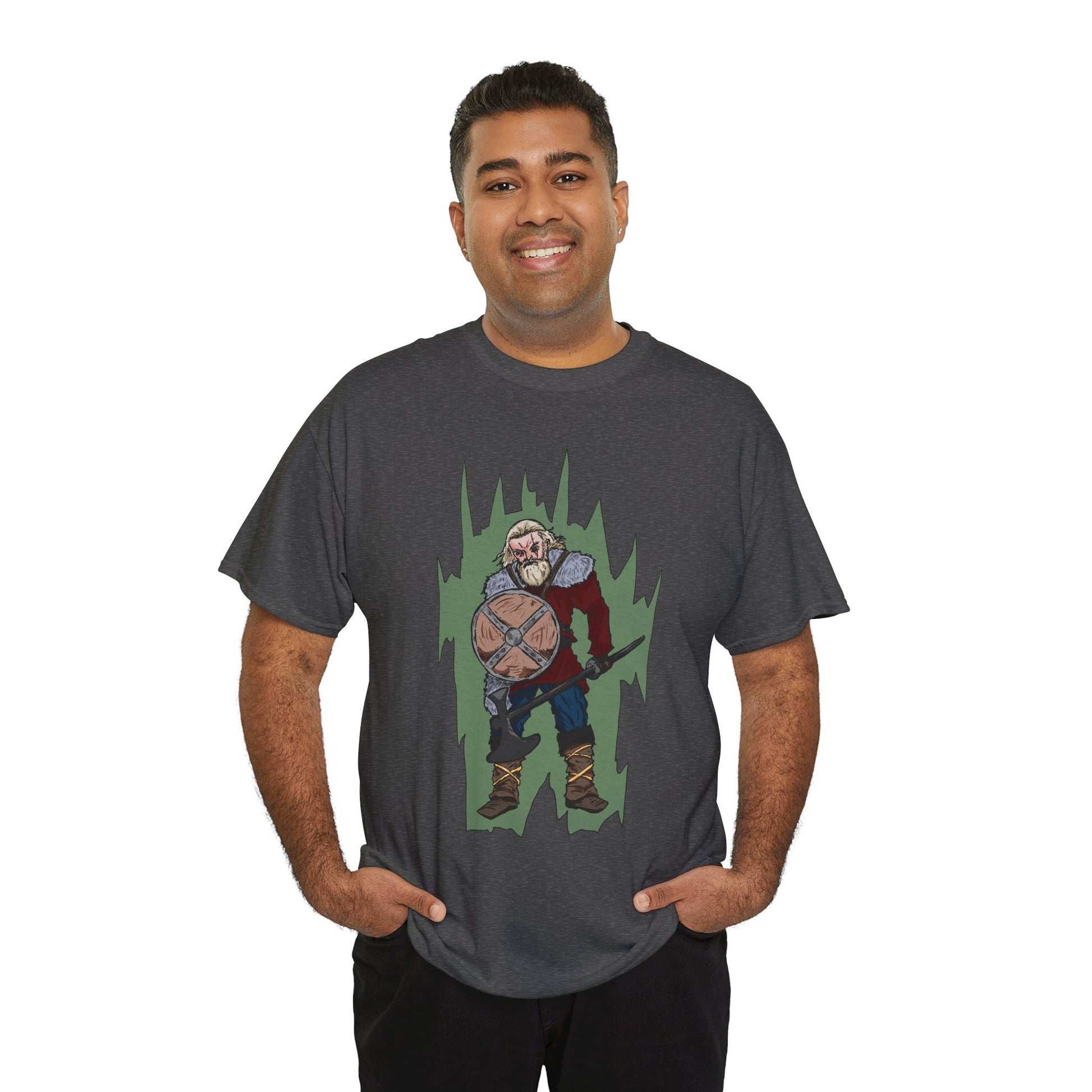 Epic Warrior Graphic Tee, Unisex Heavy Cotton Shirt, Casual Wear, Gamer Gift, Medieval Art Clothing, Battle Theme Fashion