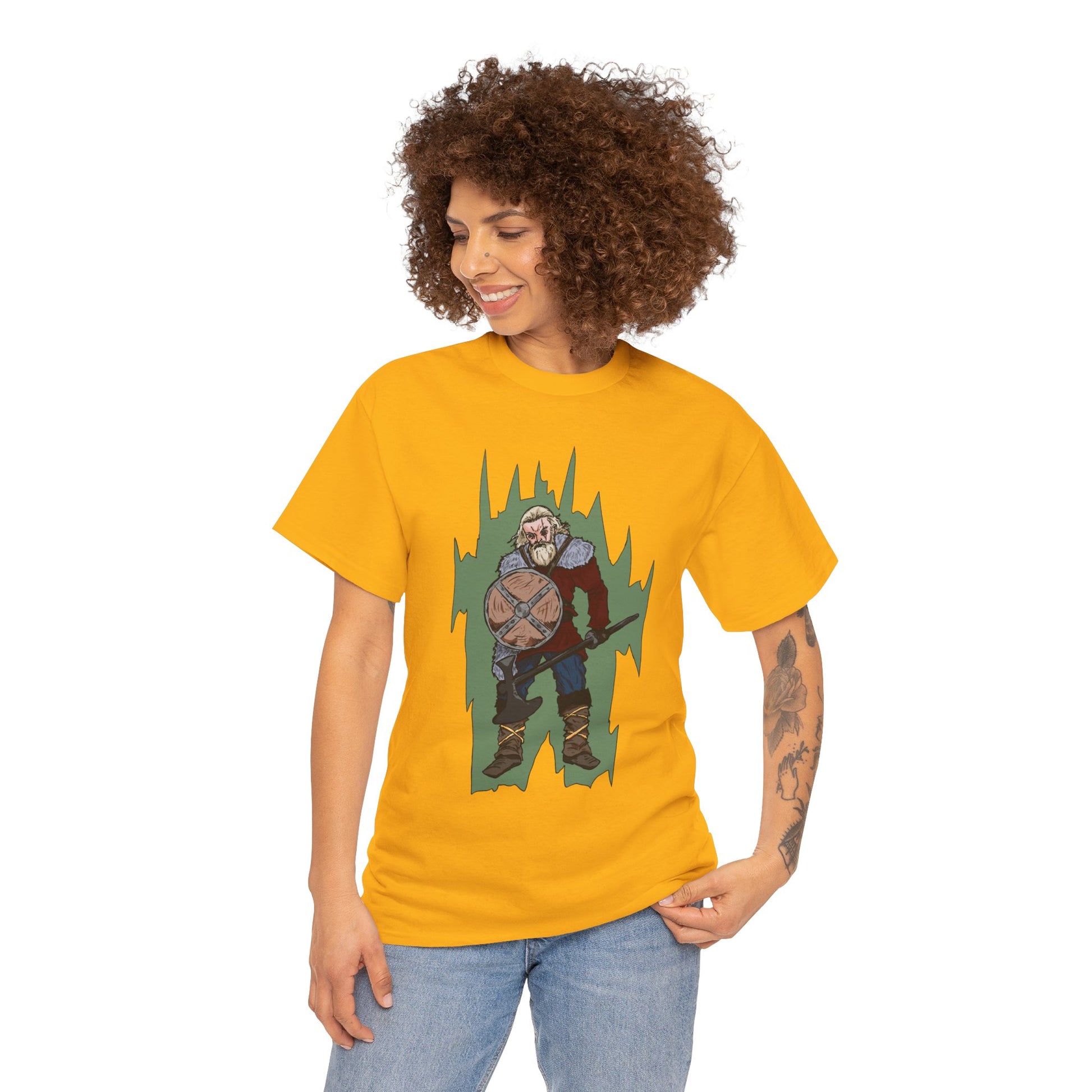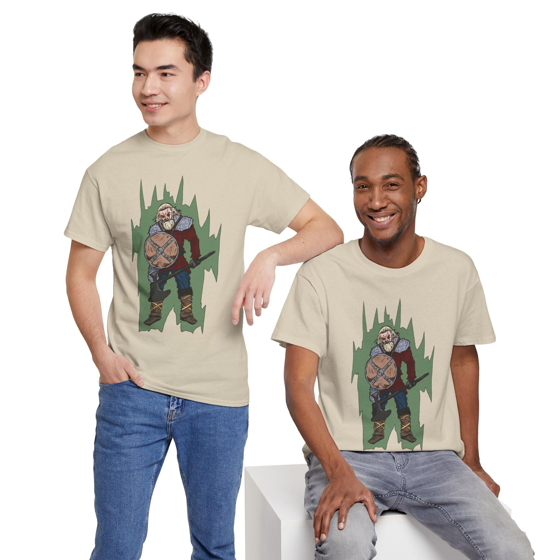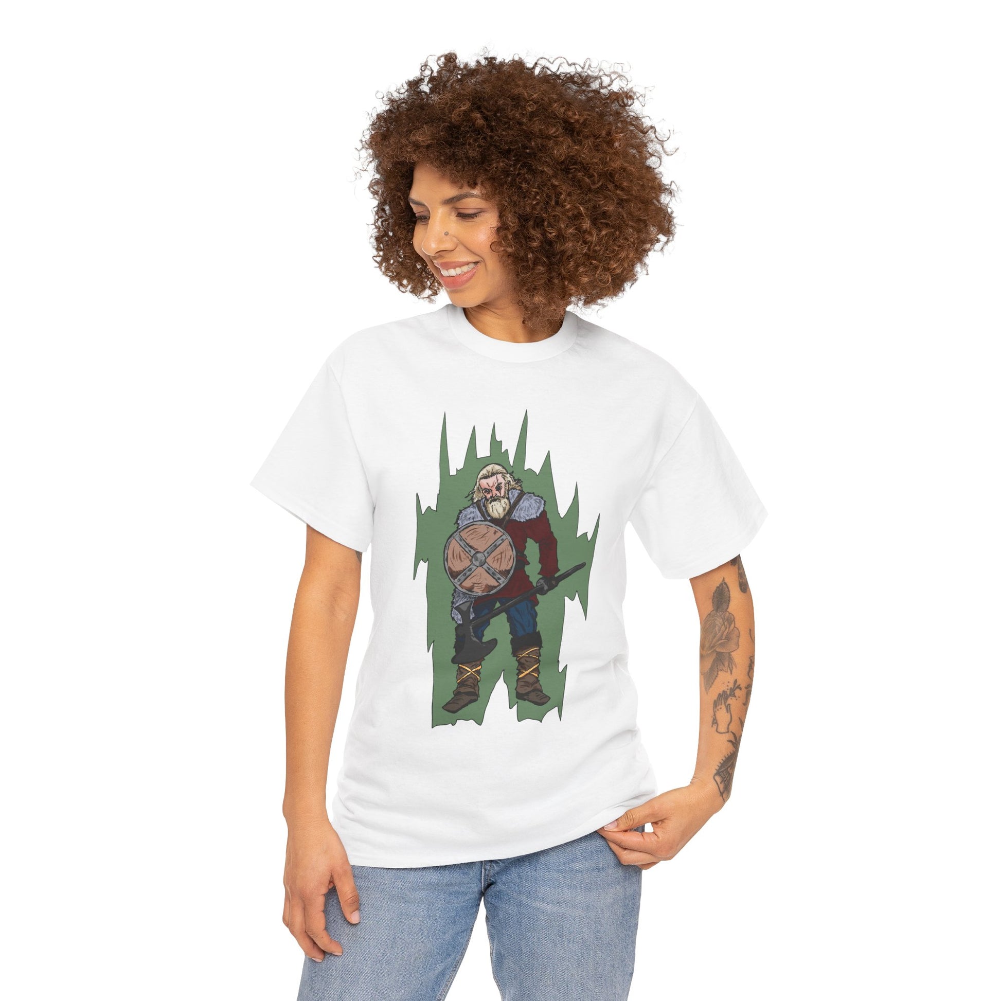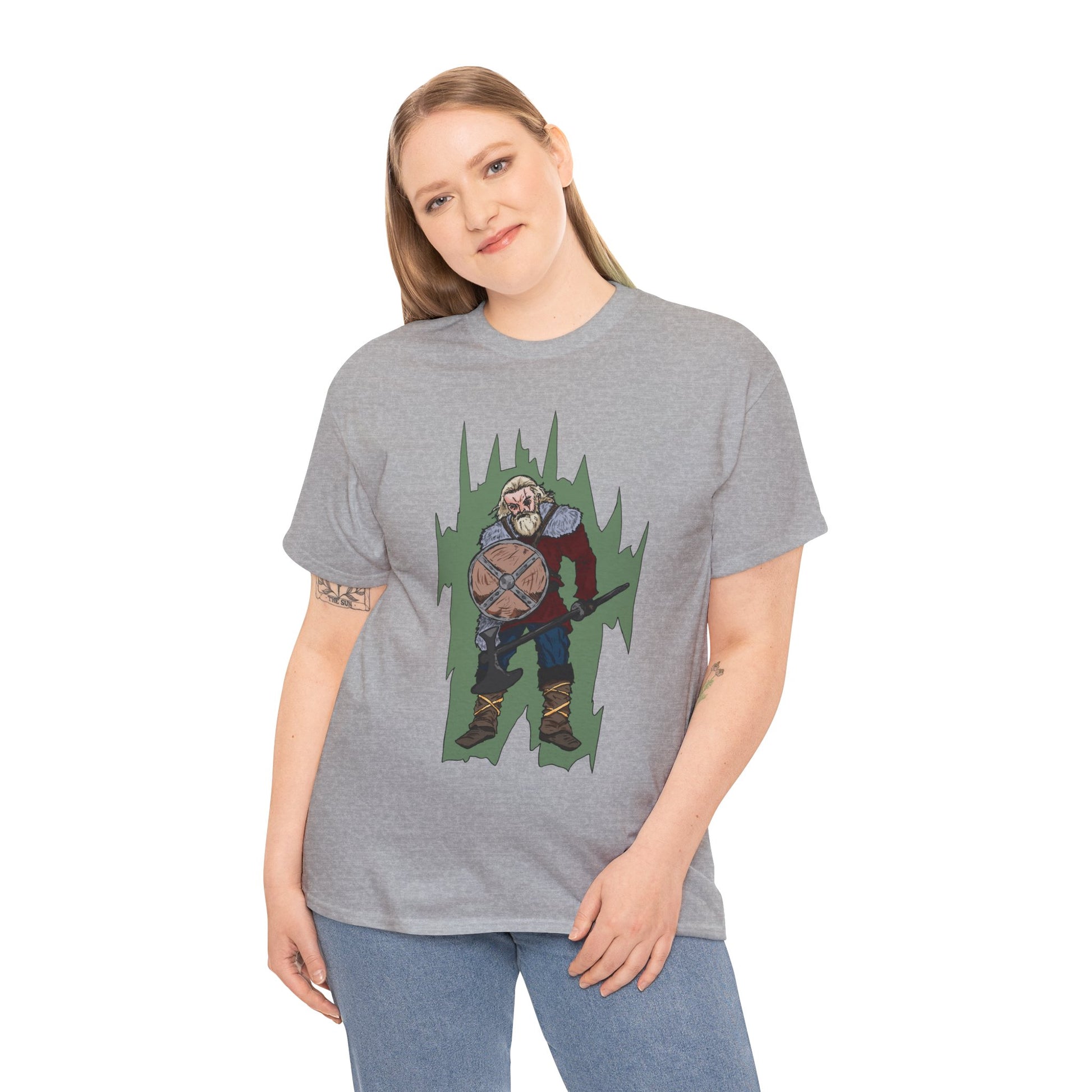 Epic Warrior Graphic Tee, Unisex Heavy Cotton Shirt, Casual Wear, Gamer Gift, Medieval Art Clothing, Battle Theme Fashion