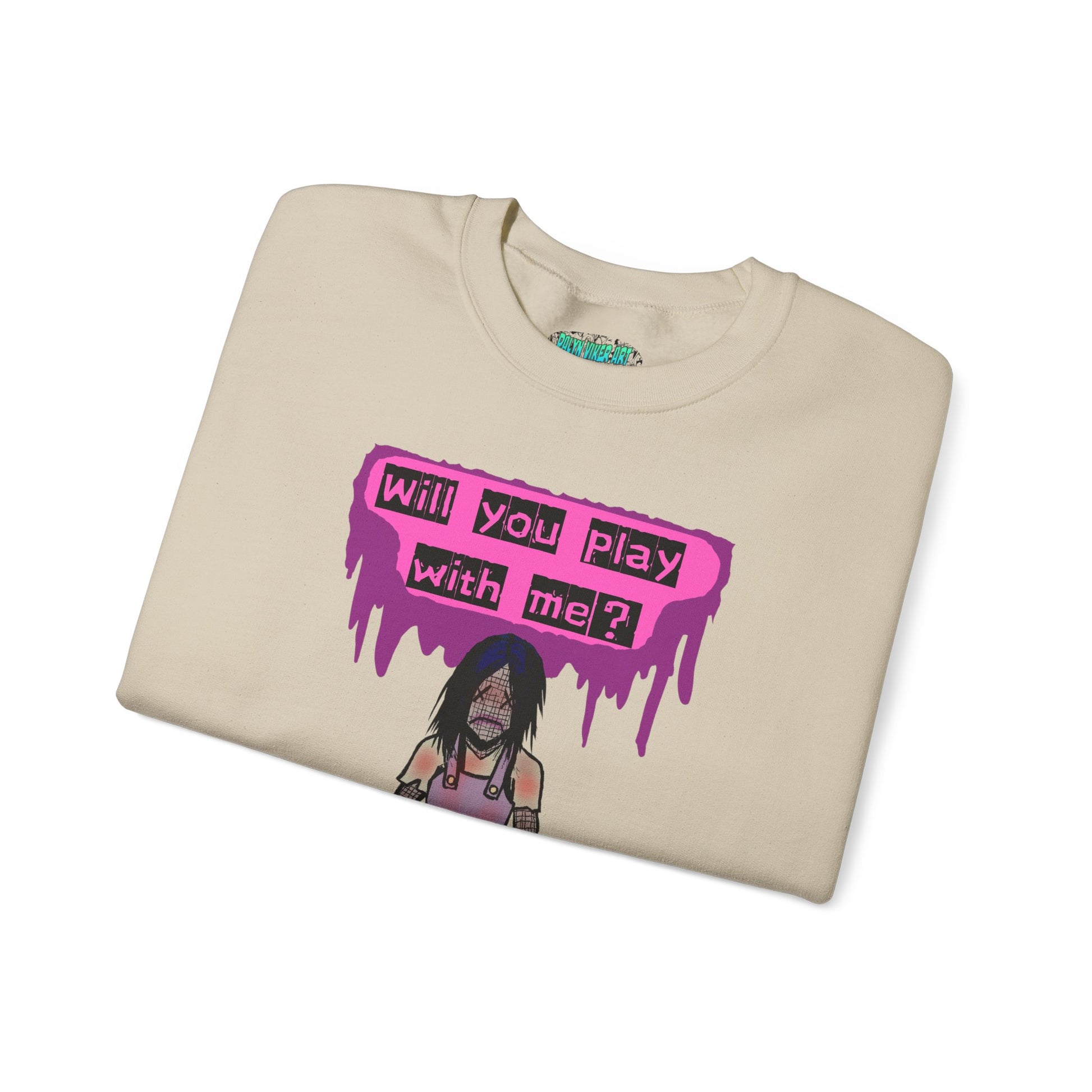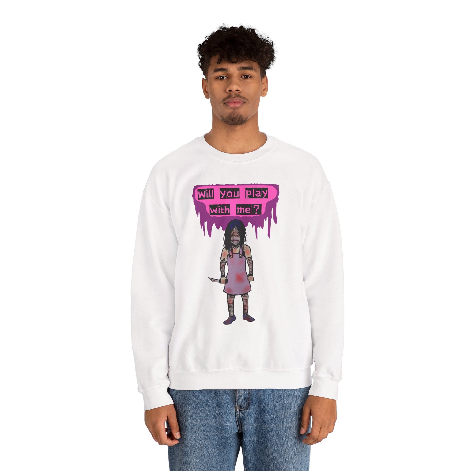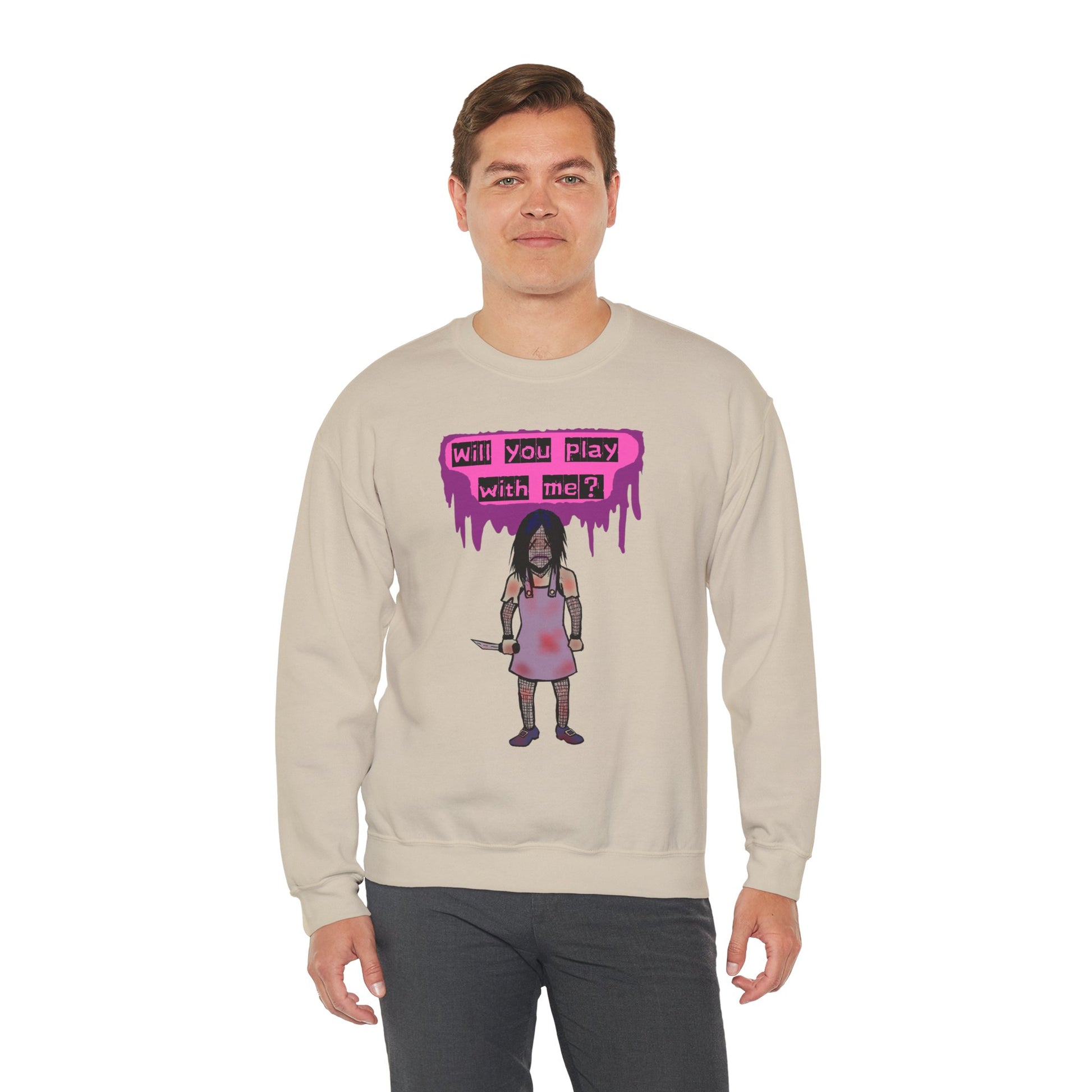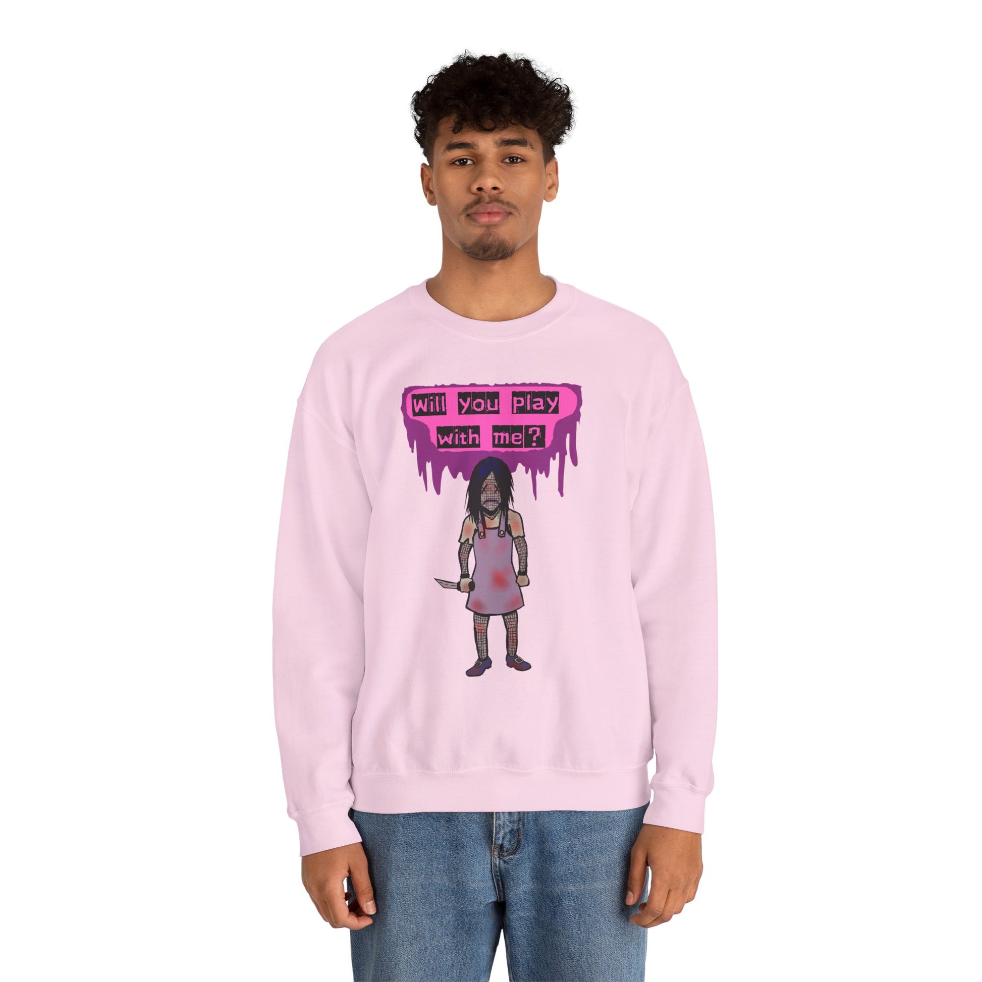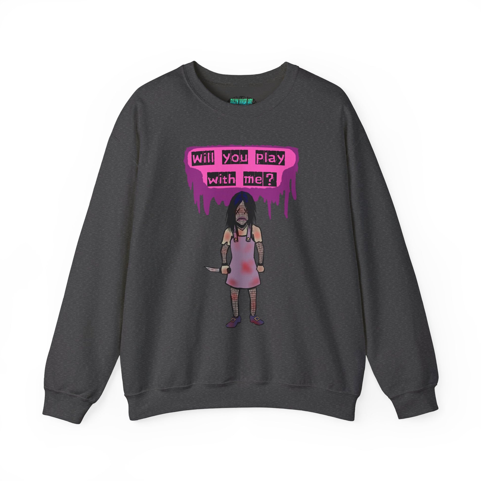 Evil Doll GHOSTLY VINTAGE UNISEX CREWNECK SWEATSHIRT - "Will You Play With Me?"