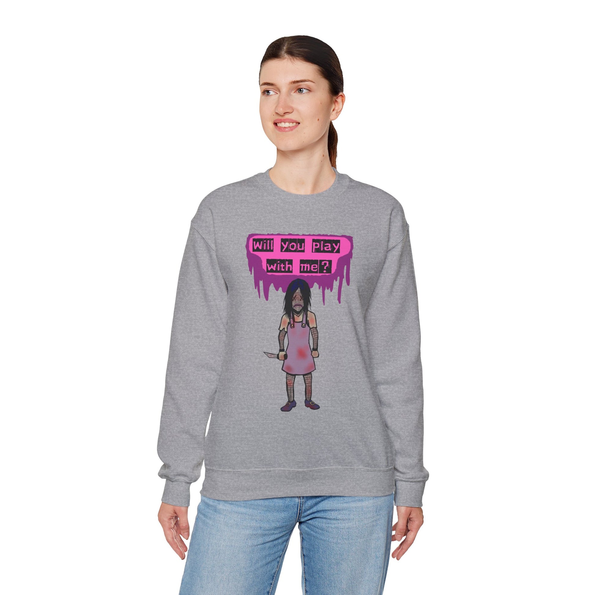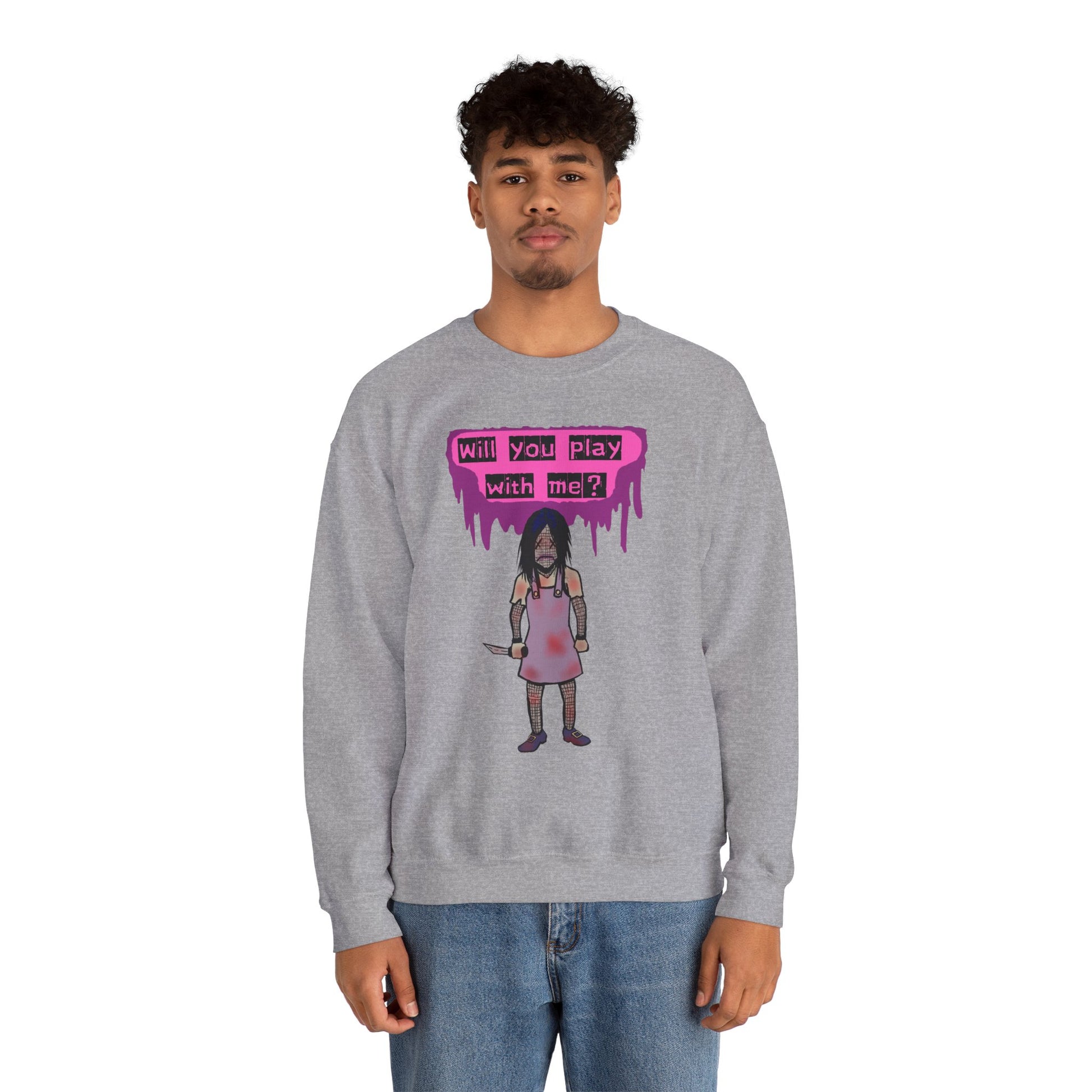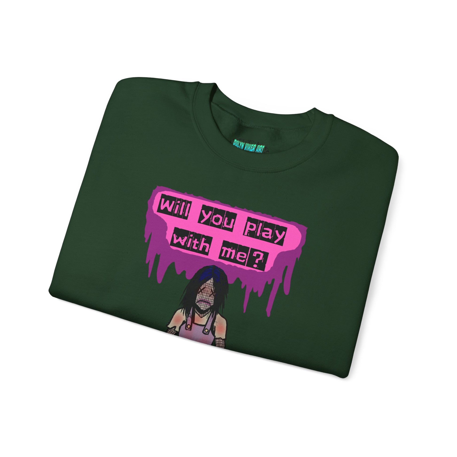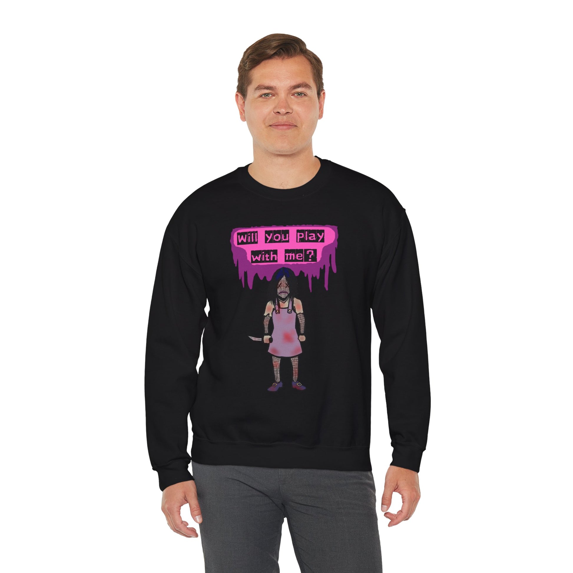 Evil Doll GHOSTLY VINTAGE UNISEX CREWNECK SWEATSHIRT - "Will You Play With Me?"