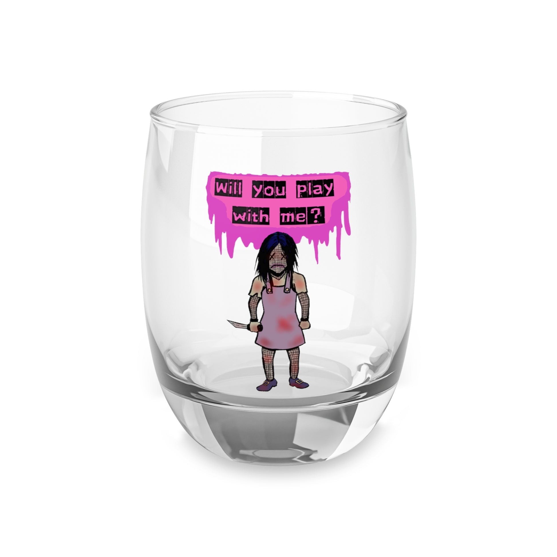 Evil Doll Whiskey Glass, Halloween Drinkware, Unique Gift for Gamers, Fun Home Bar Decor, Playful Spirits Glass, Collectible Glassware