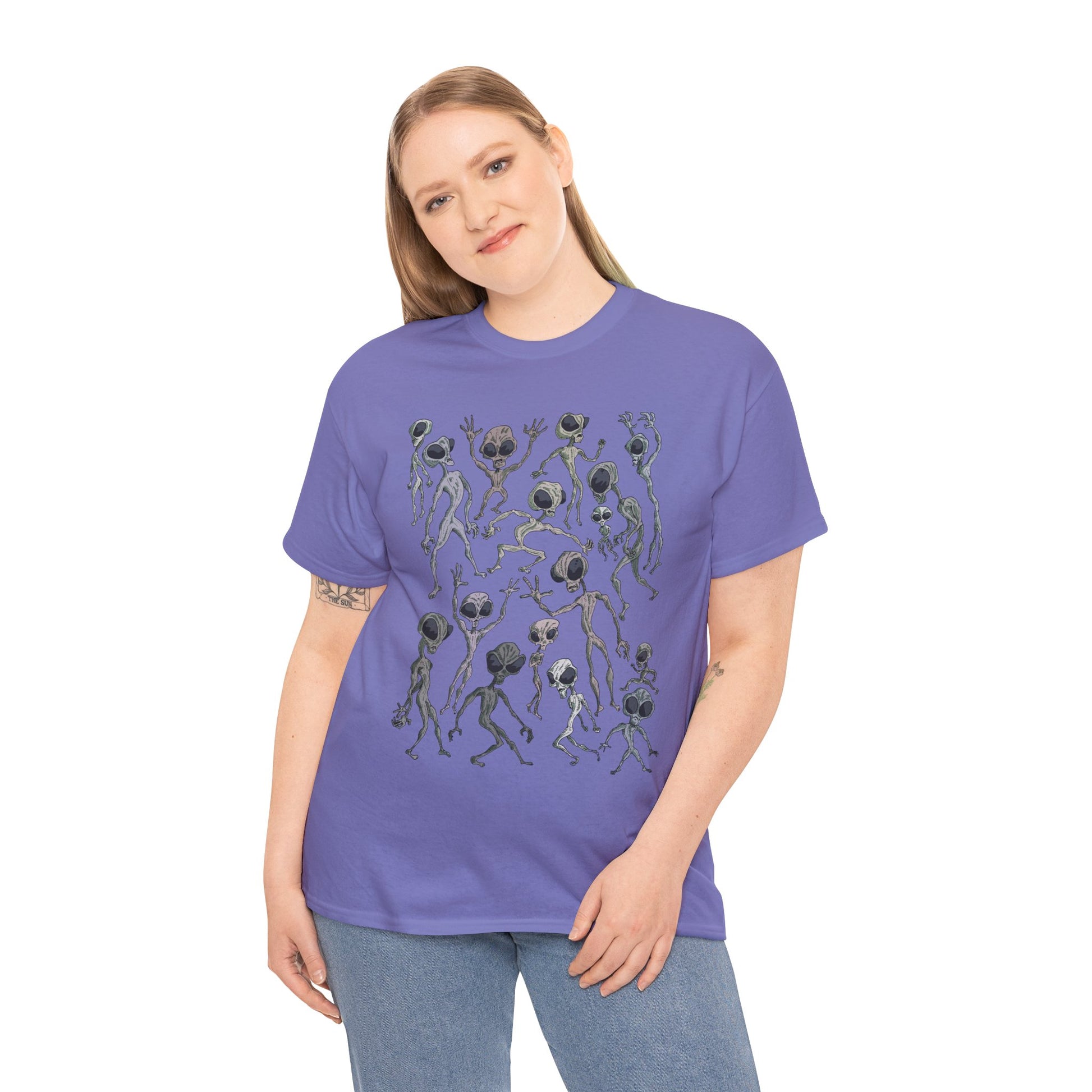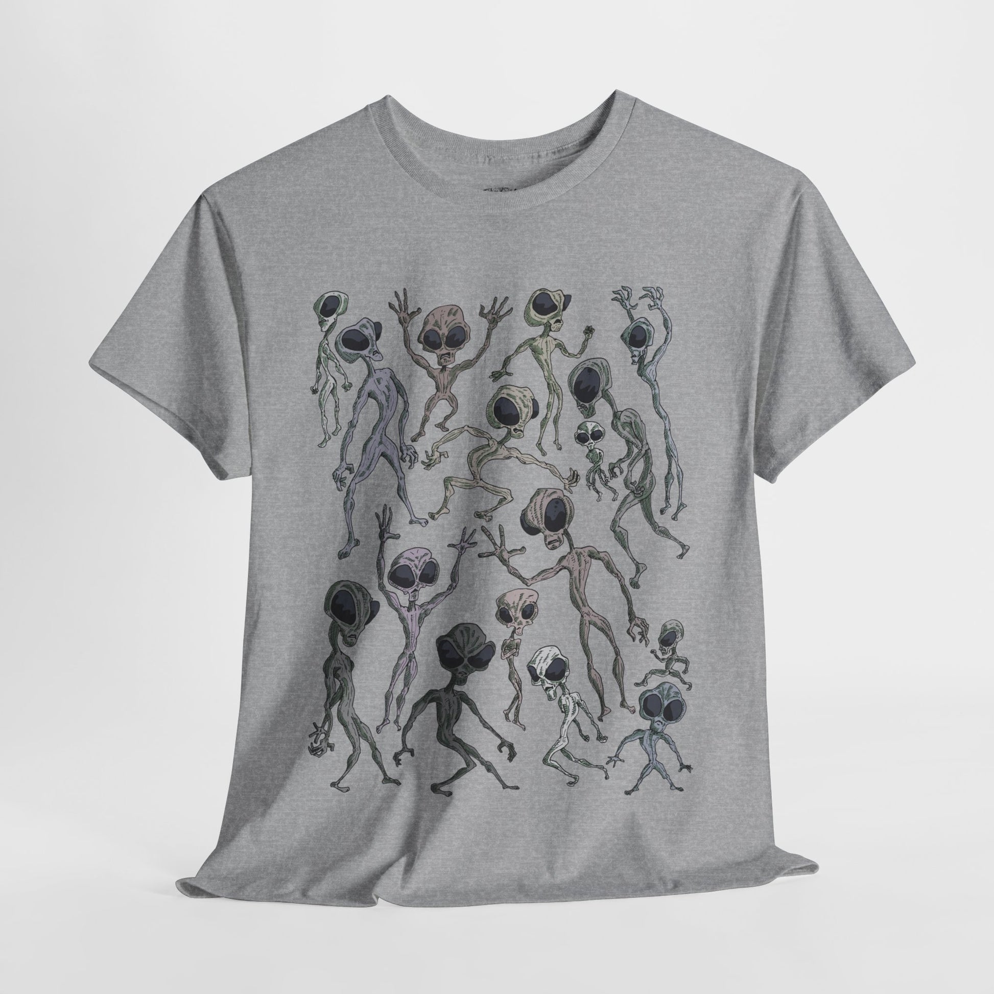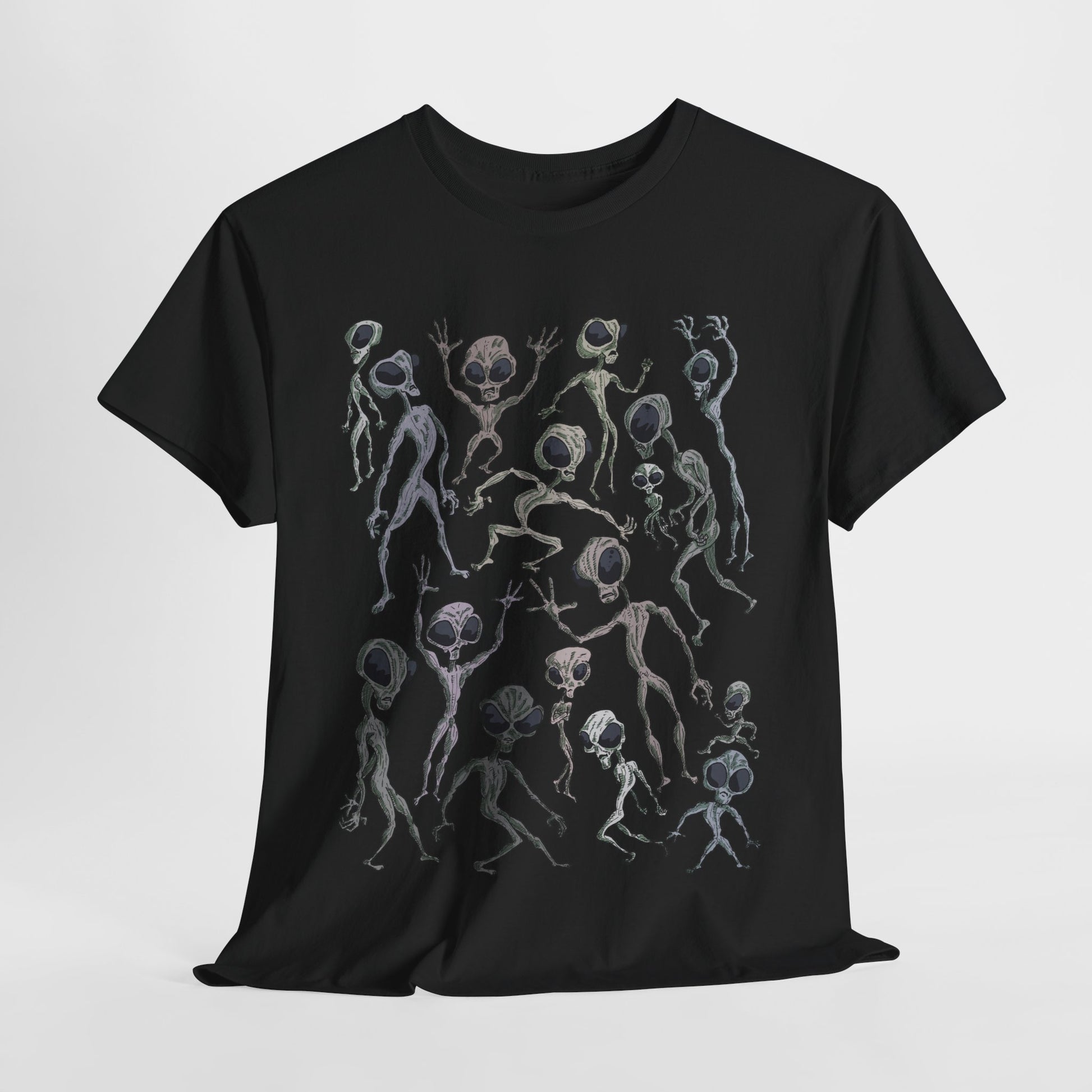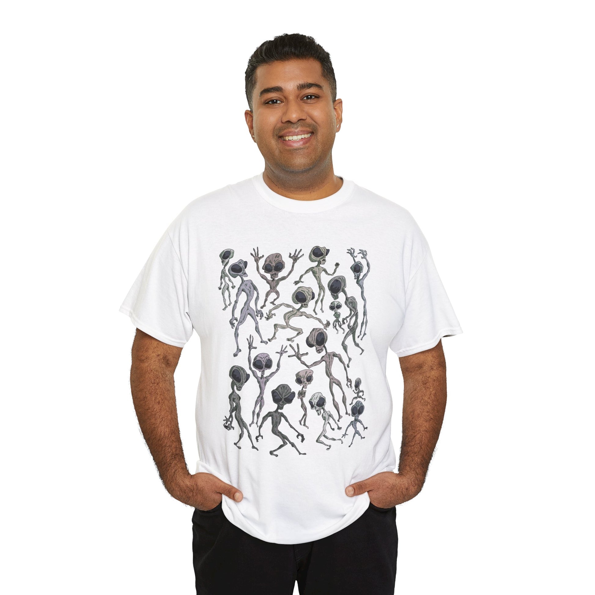 Funky Alien Dance Party Tee, Unisex Heavy Cotton Shirt, Fun Graphic Tee, Casual Wear for Parties, Unique Gift for Alien Lovers