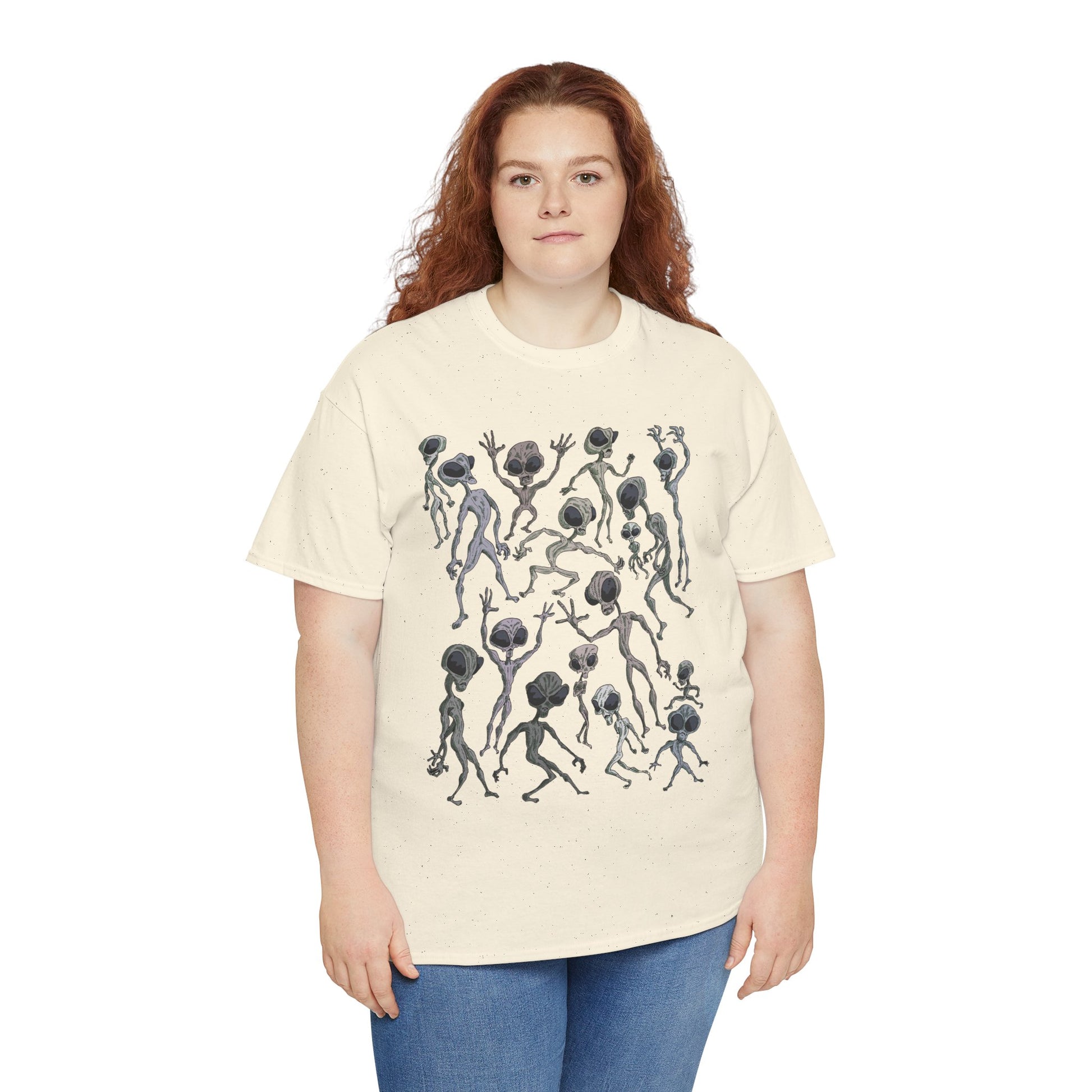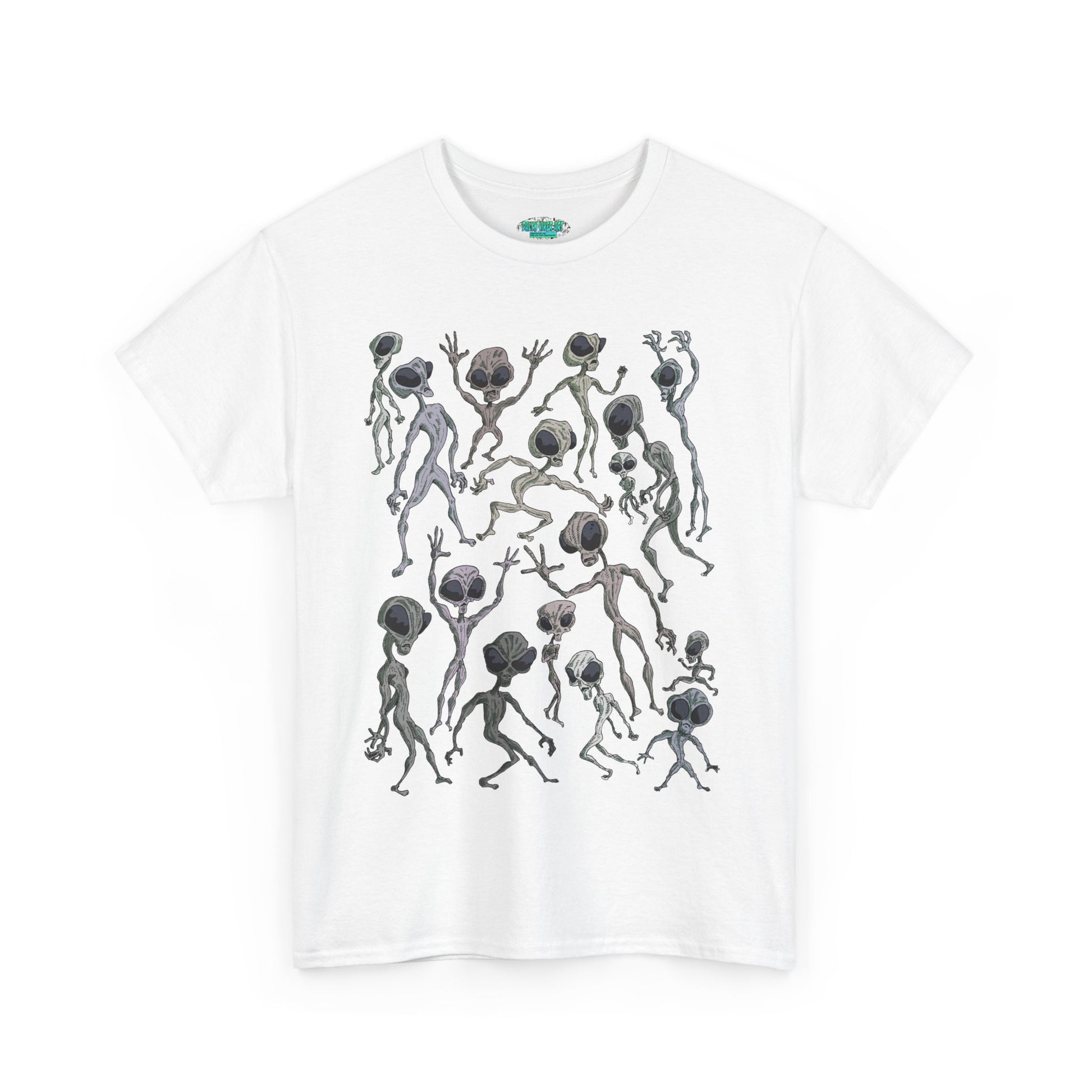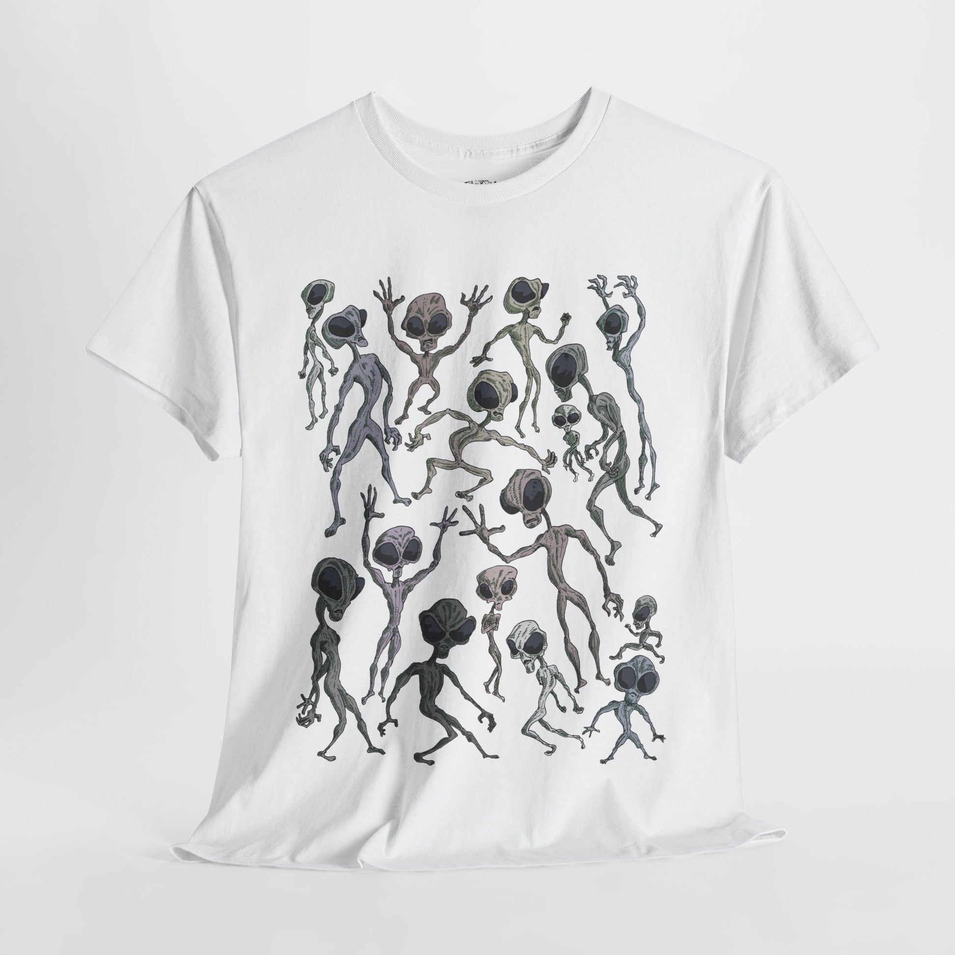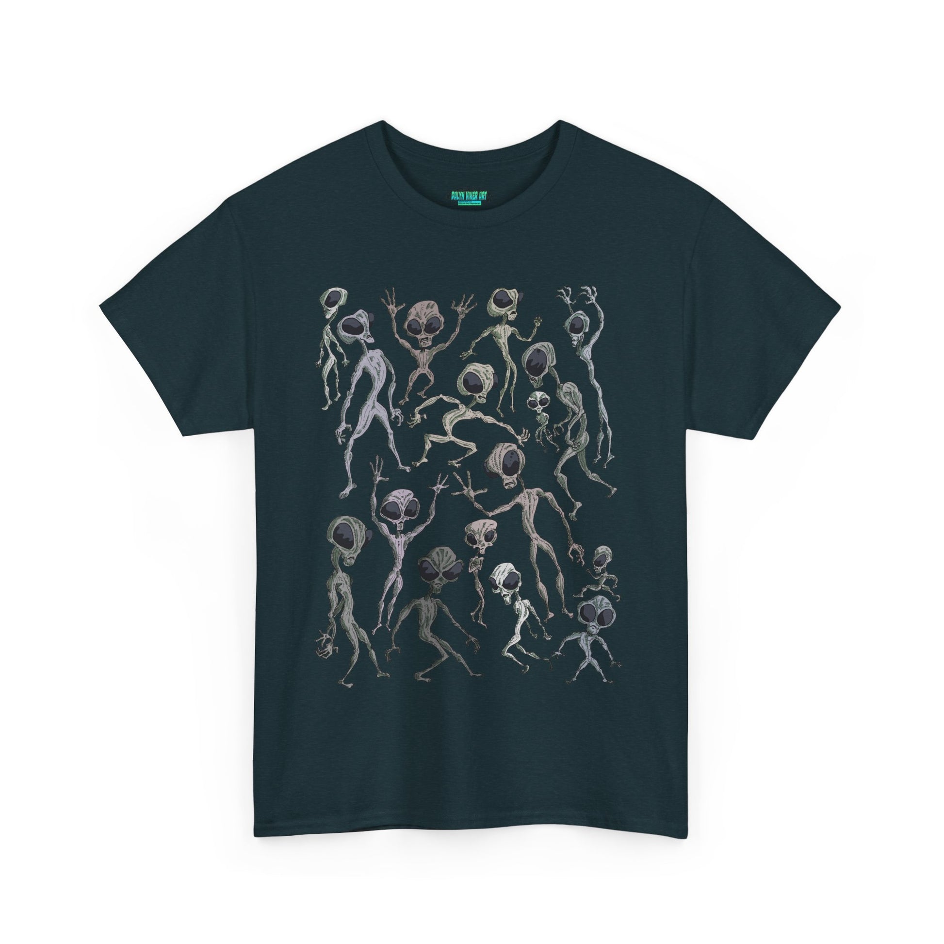 Funky Alien Dance Party Tee, Unisex Heavy Cotton Shirt, Fun Graphic Tee, Casual Wear for Parties, Unique Gift for Alien Lovers