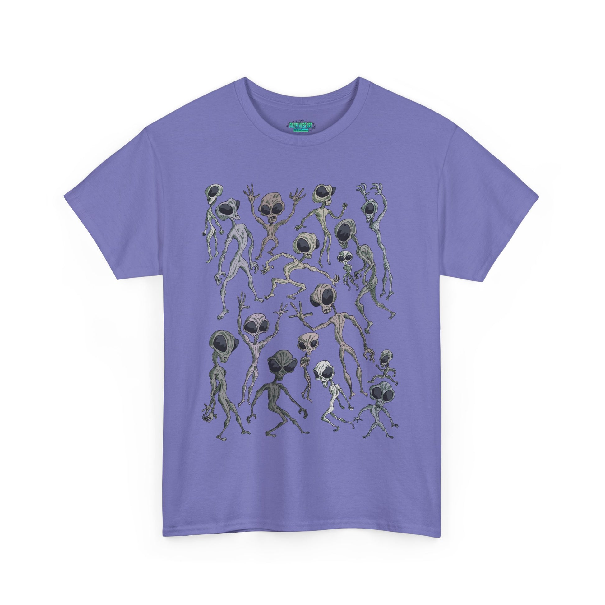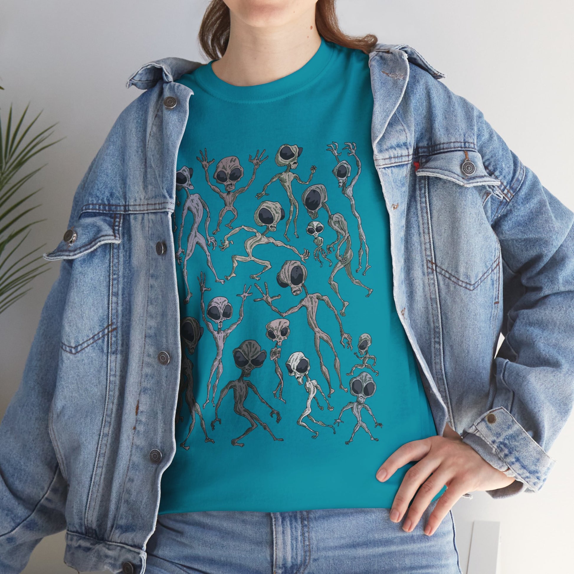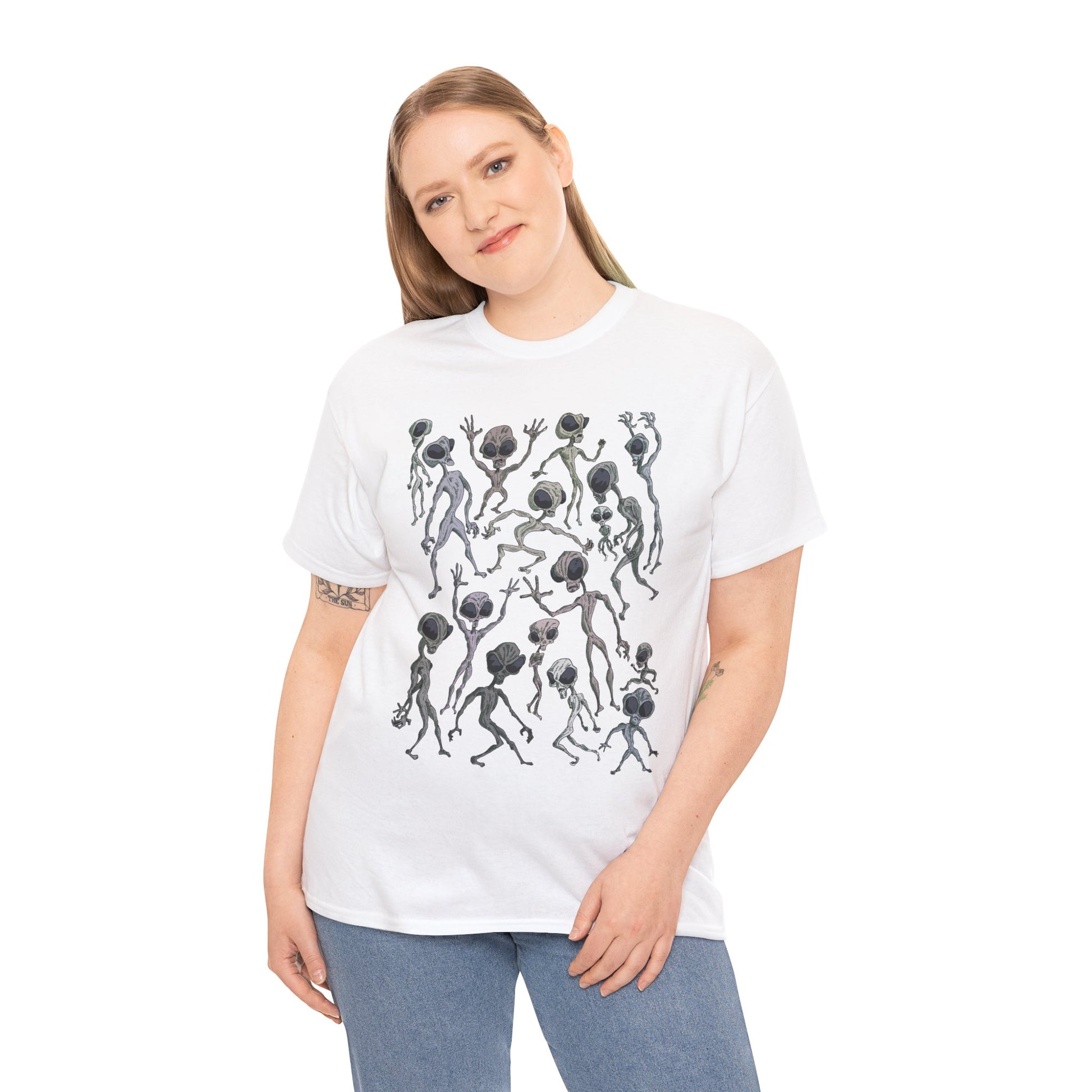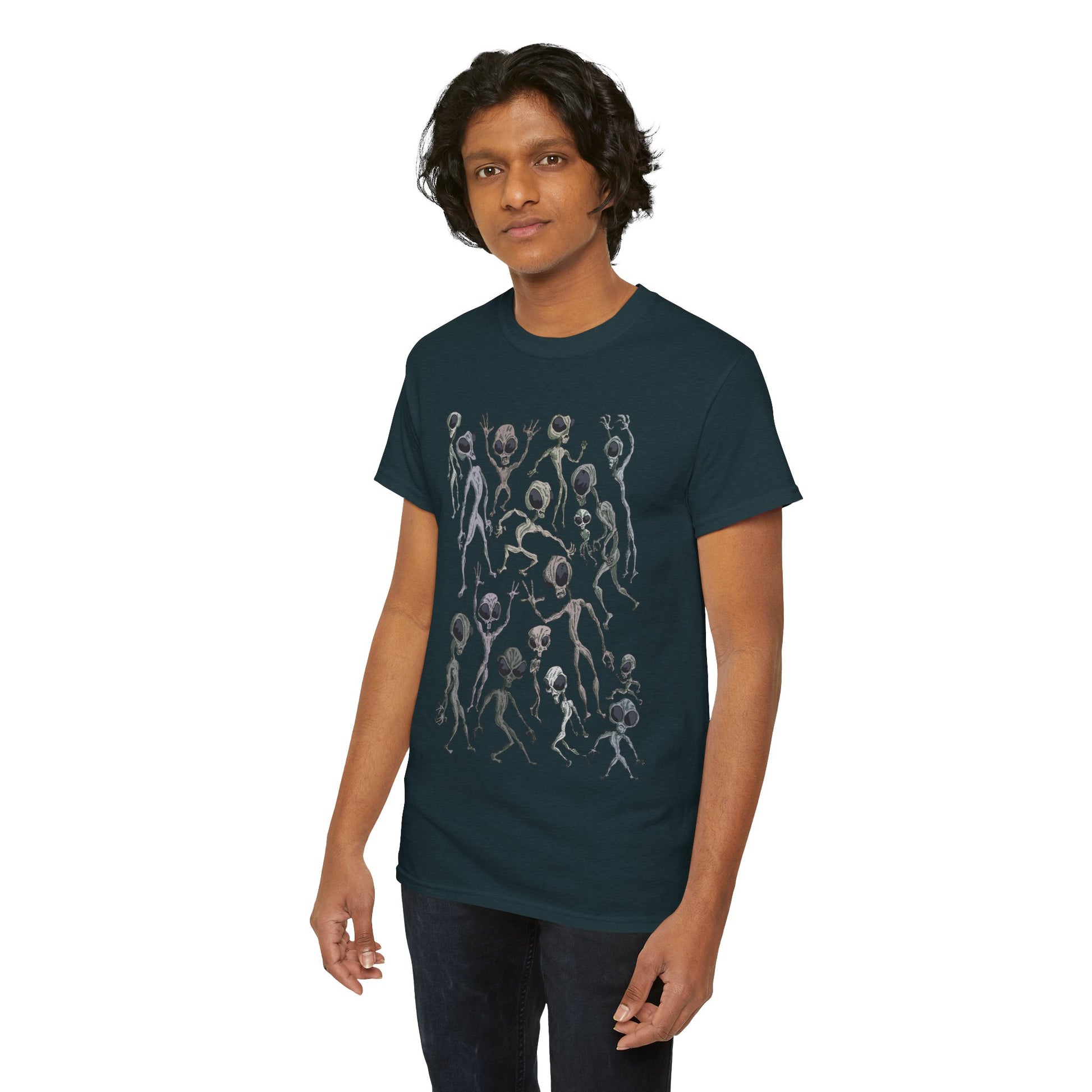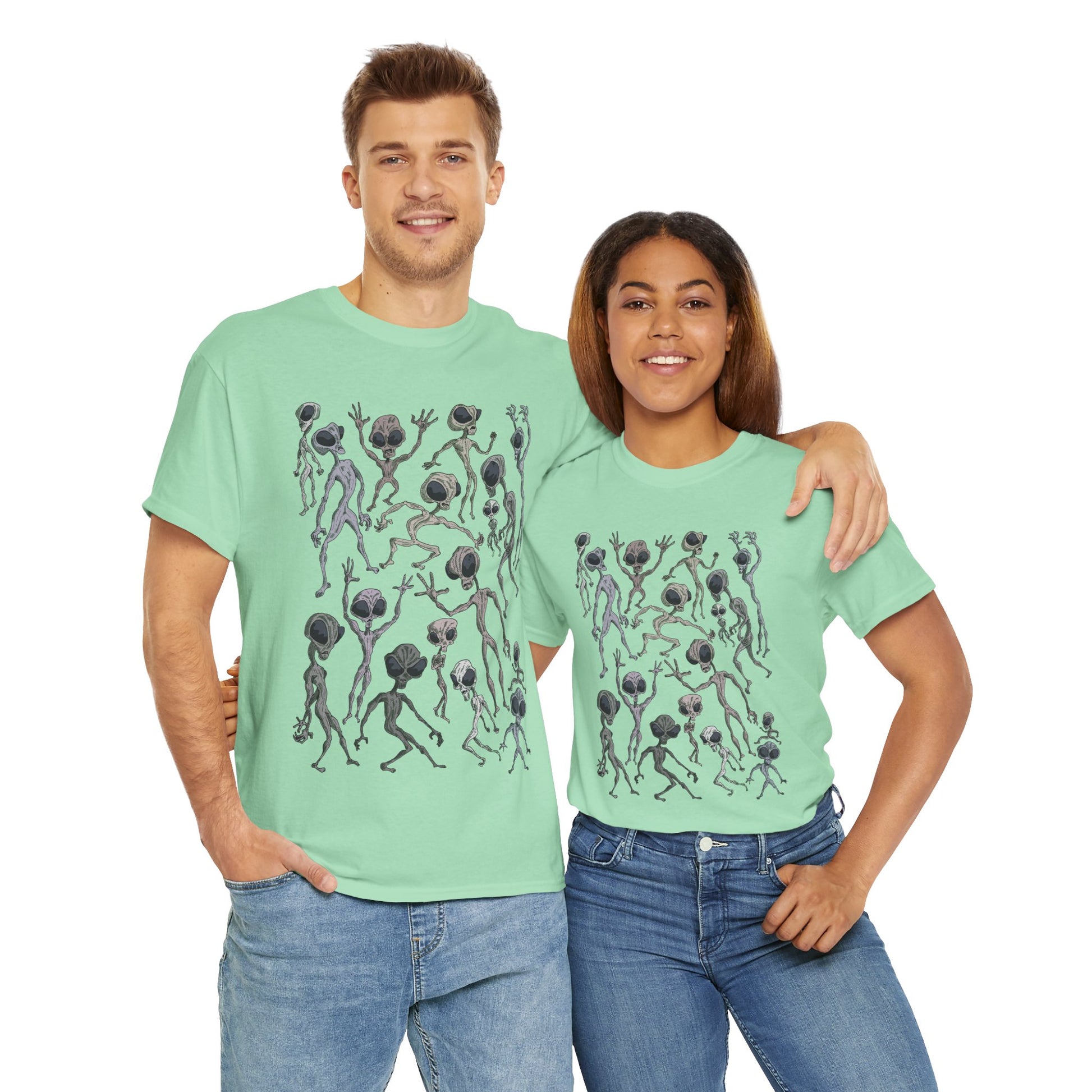 Funky Alien Dance Party Tee, Unisex Heavy Cotton Shirt, Fun Graphic Tee, Casual Wear for Parties, Unique Gift for Alien Lovers