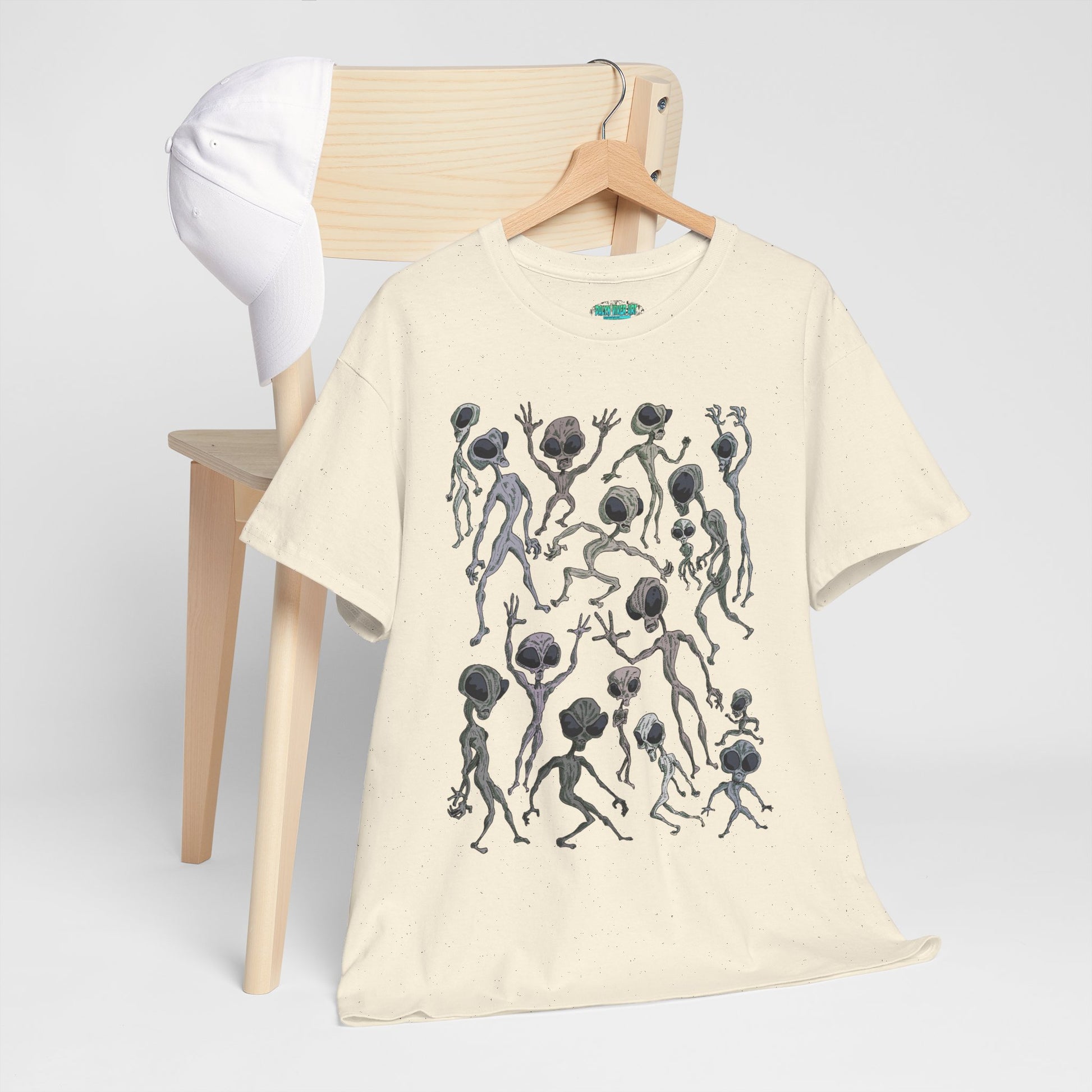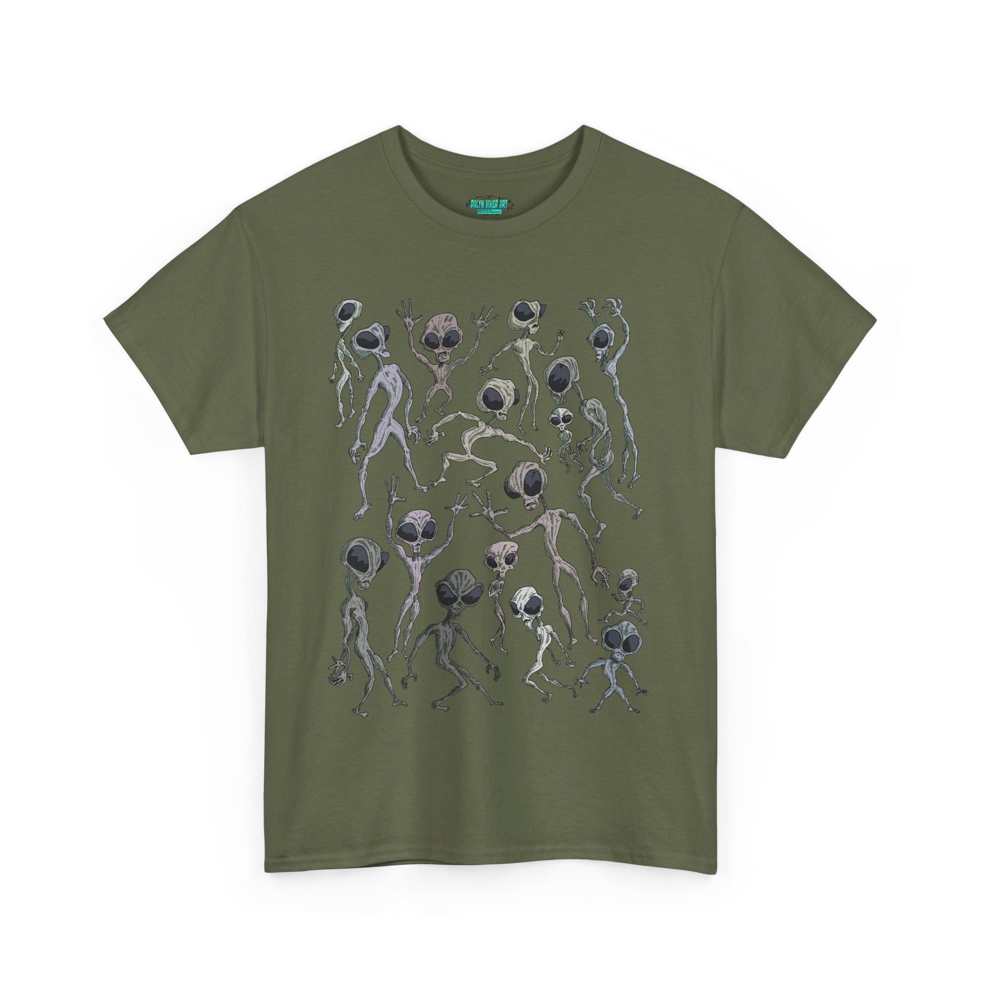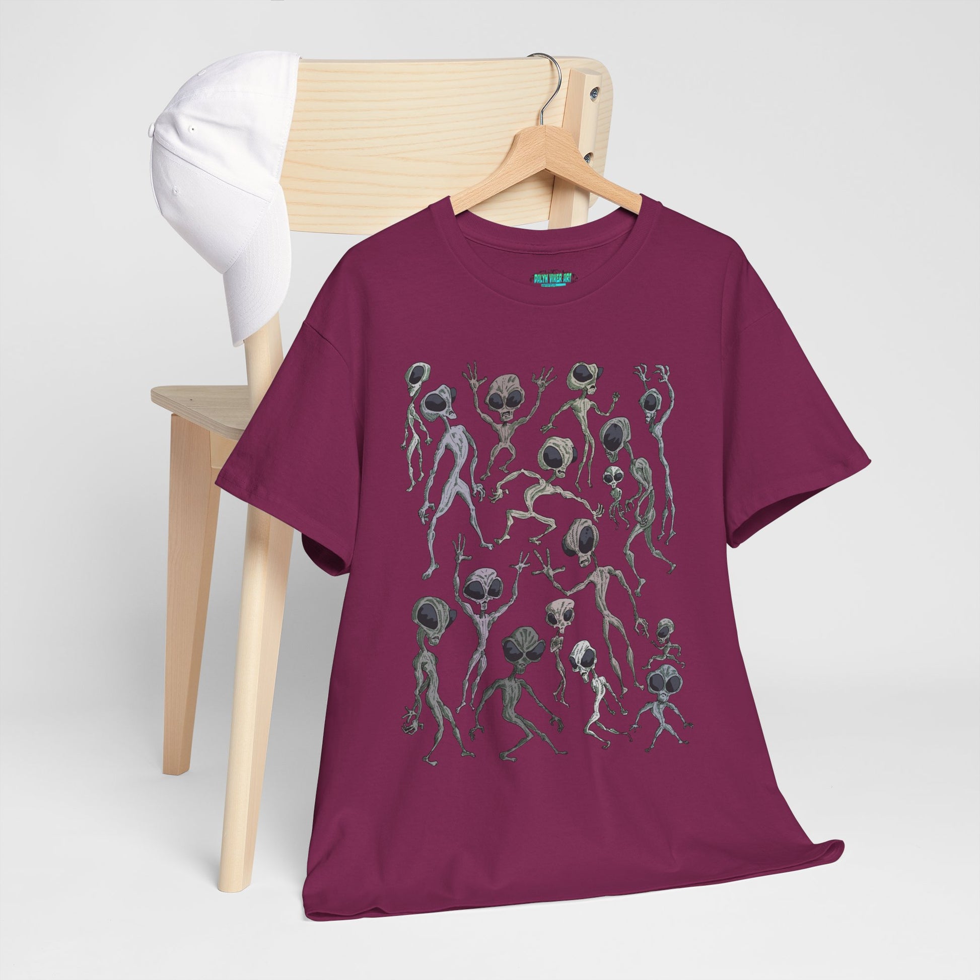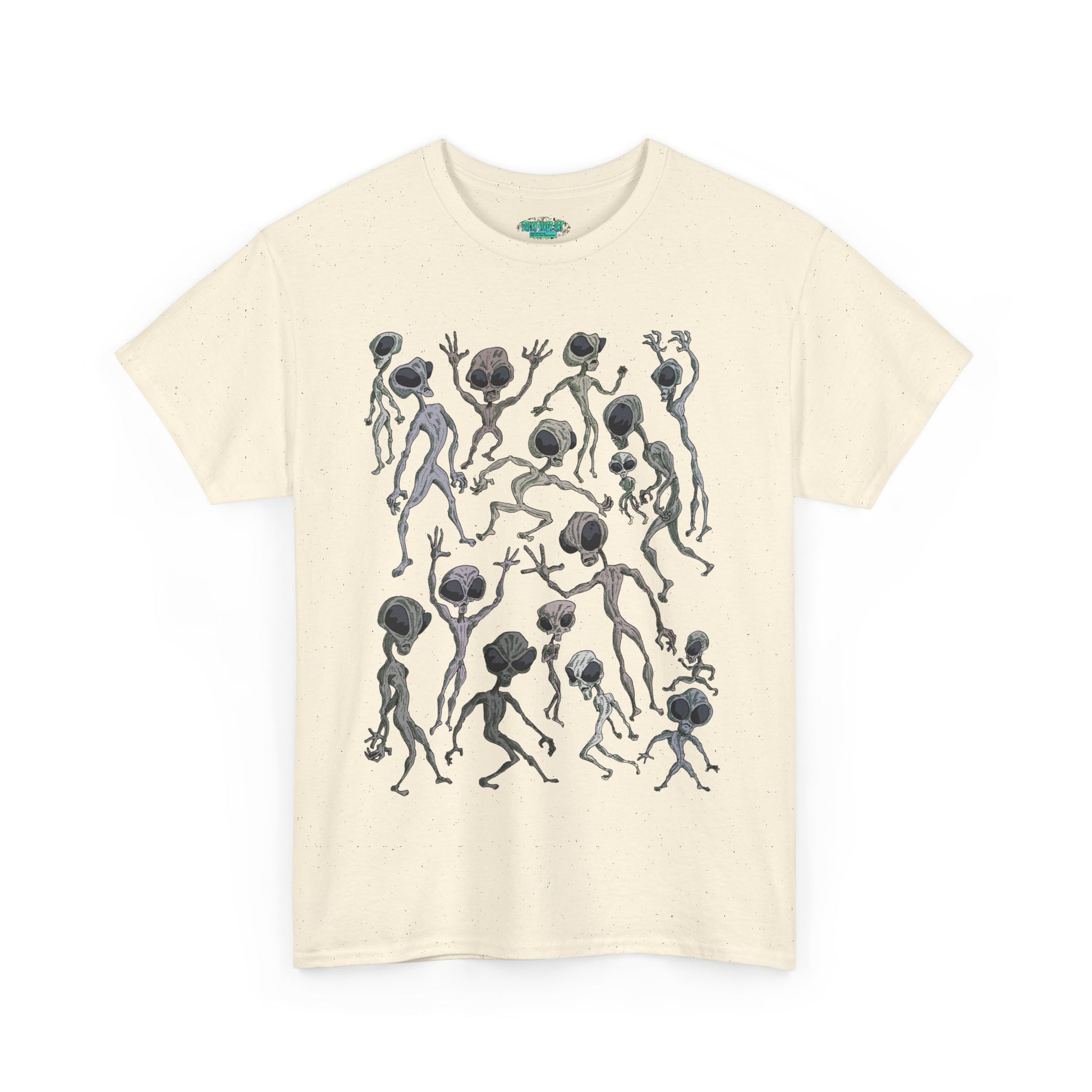 Funky Alien Dance Party Tee, Unisex Heavy Cotton Shirt, Fun Graphic Tee, Casual Wear for Parties, Unique Gift for Alien Lovers