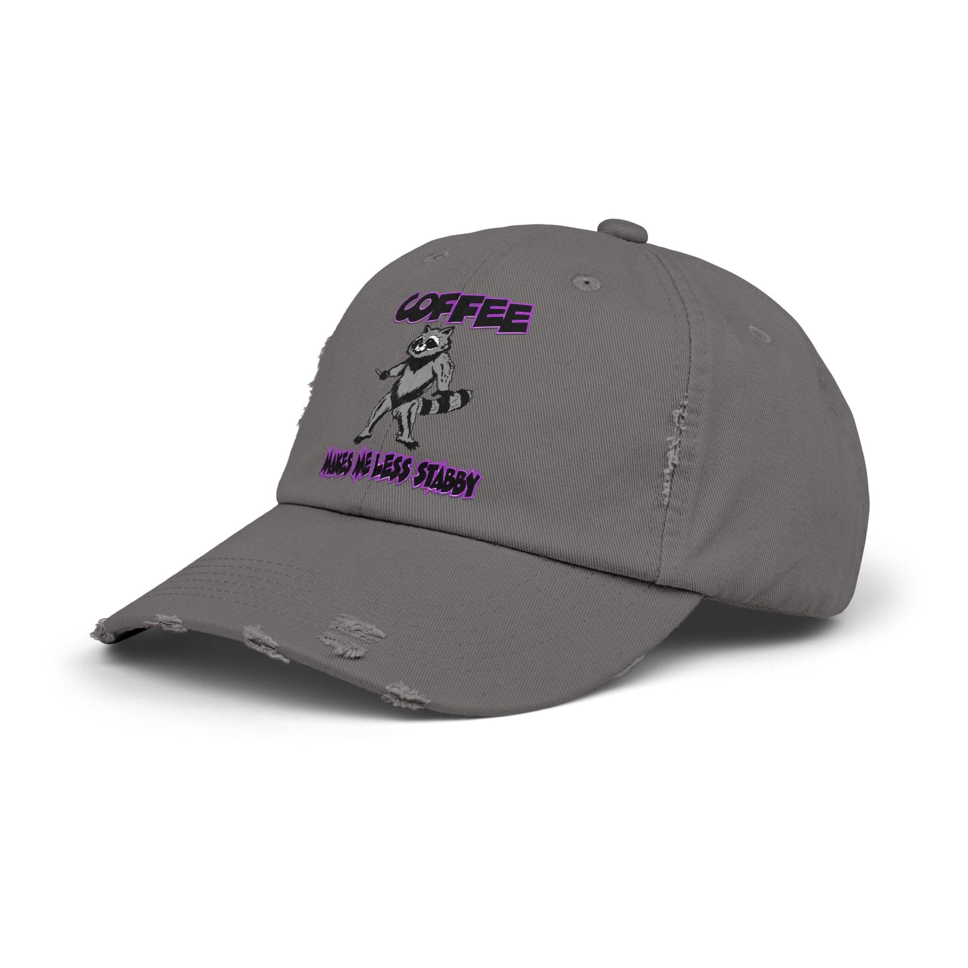 Funny Unisex Distressed Cap - "Coffee Makes Me Less Stabby" - Grumpy Raccoon
